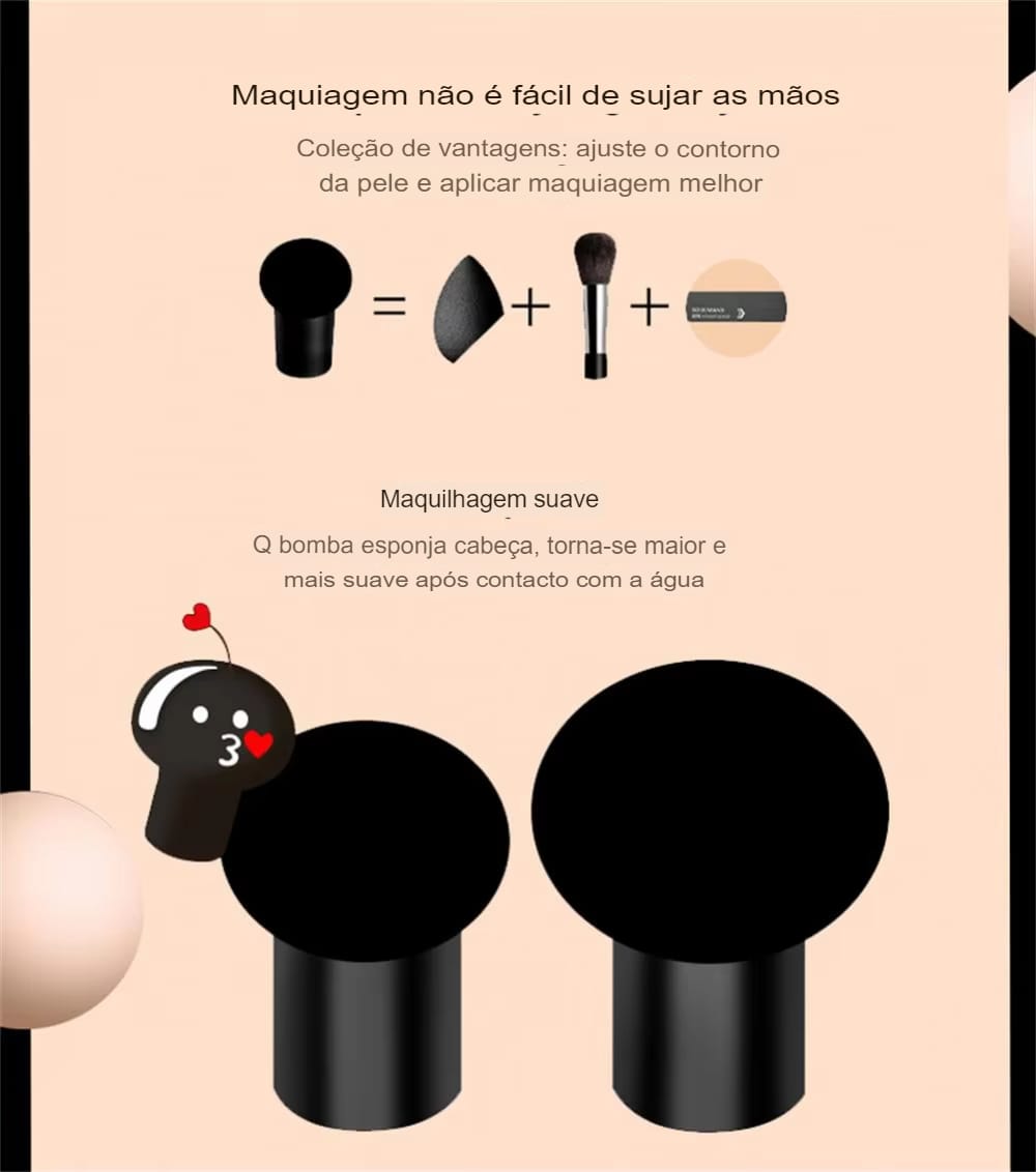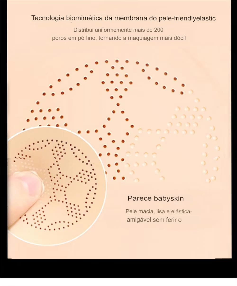 A embalagem acompanha uma esponja em forma de cogumelo que facilita a aplicação sem sujar as mãos, garantindo que mesmo os iniciantes consigam um resultado profissional. Disponível em três tonalidades (Ivory, Natural e Natural Brown), atende às necessidades de diferentes tipos de pele.