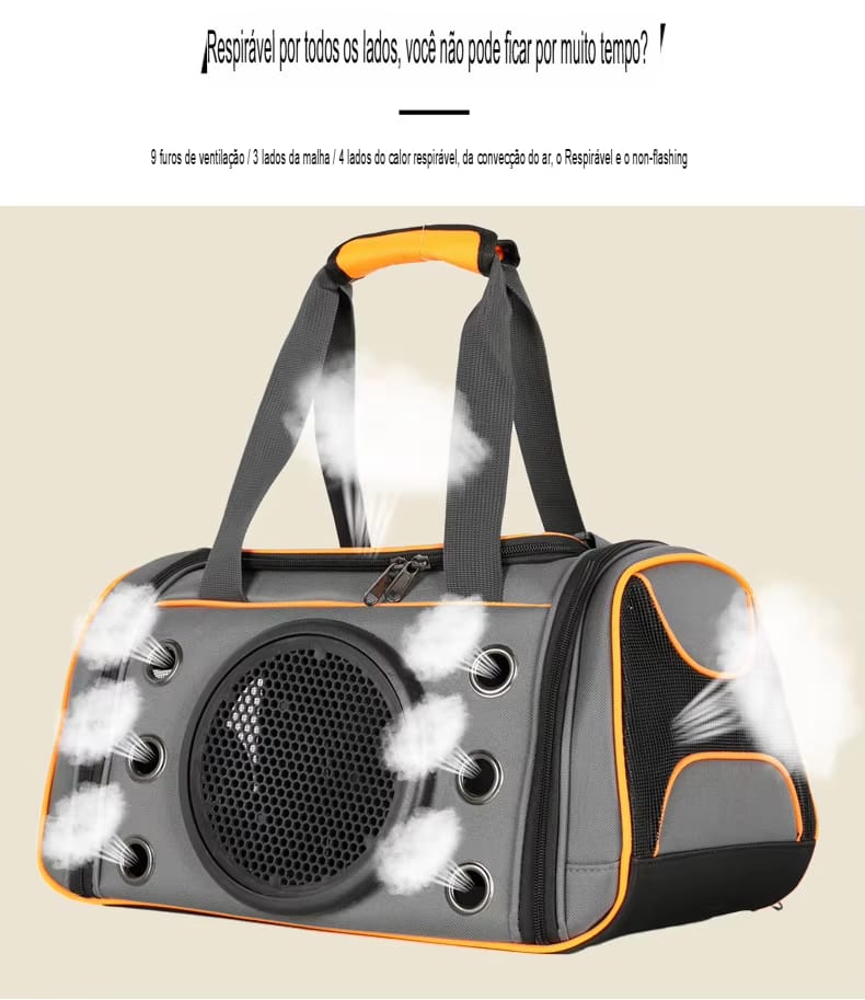 Transporte cães e gatos com segurança! Bolsa em nylon resistente, confortável e respirável. Ideal para passeios.