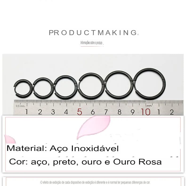 Descubra a elegância simples dos brincos de aço inoxidável circulares de 8 a 20mm. Estes brincos são perfeitos para quem busca um acessório versátil, que se adapta a qualquer estilo. Sejam usados no tragus, cartilagem ou lóbulo, eles oferecem um toque sofisticado e neutro que complementa qualquer visual.