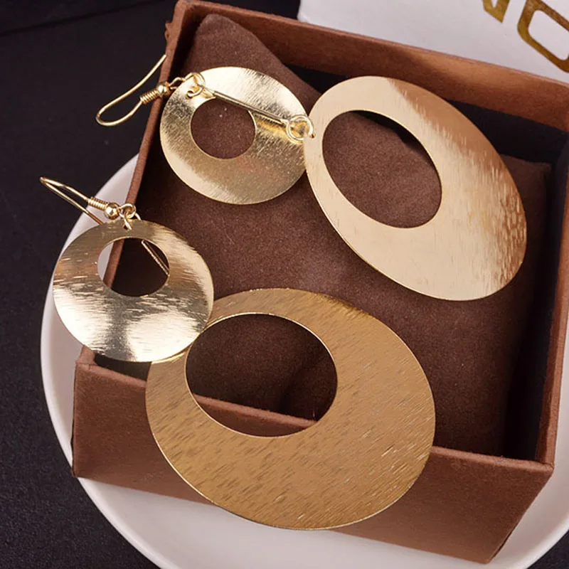 Brincos de Clip Dourados Grandes Duplo Círculo JIOFREE Elegantes