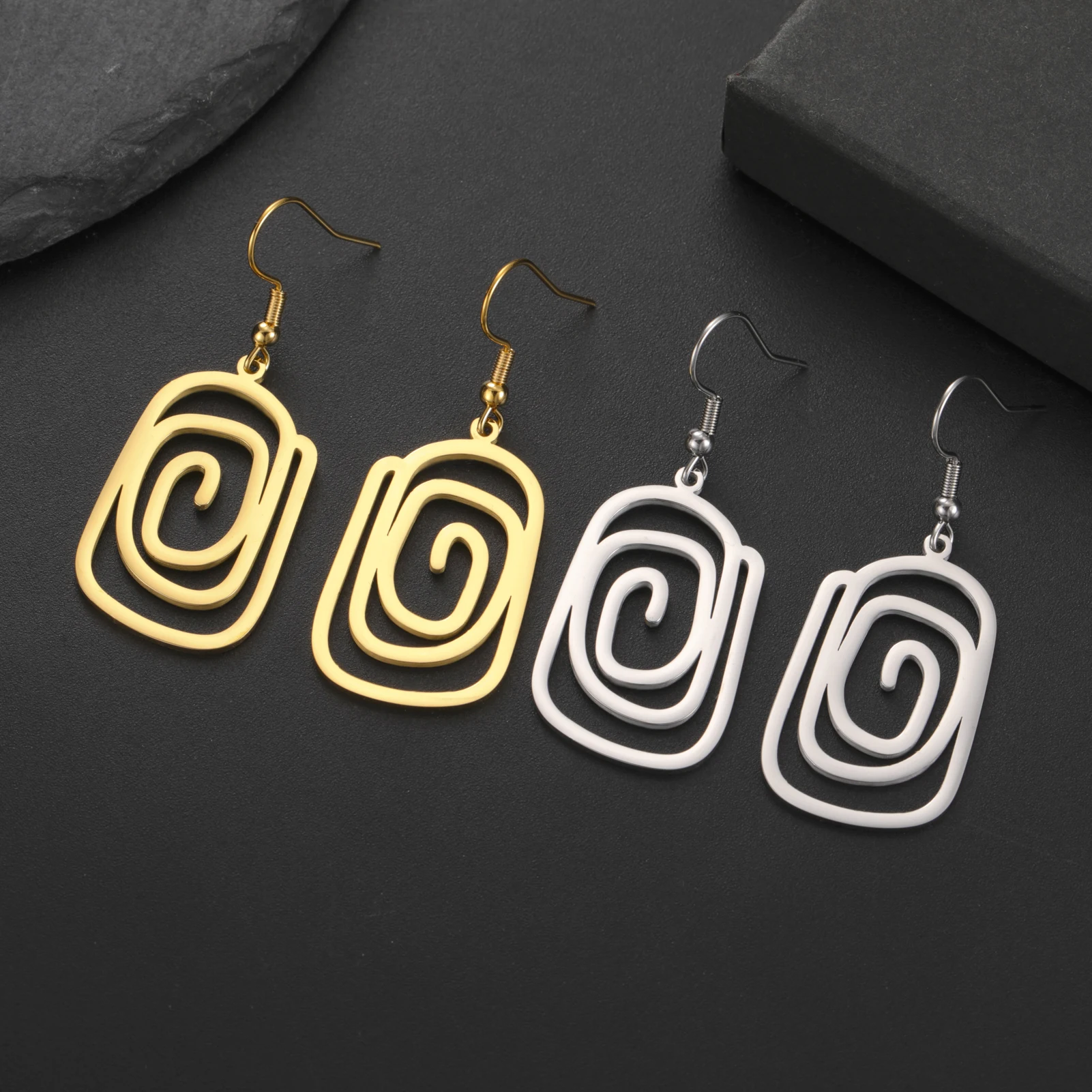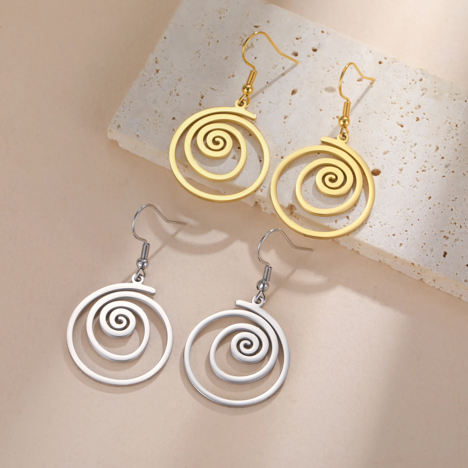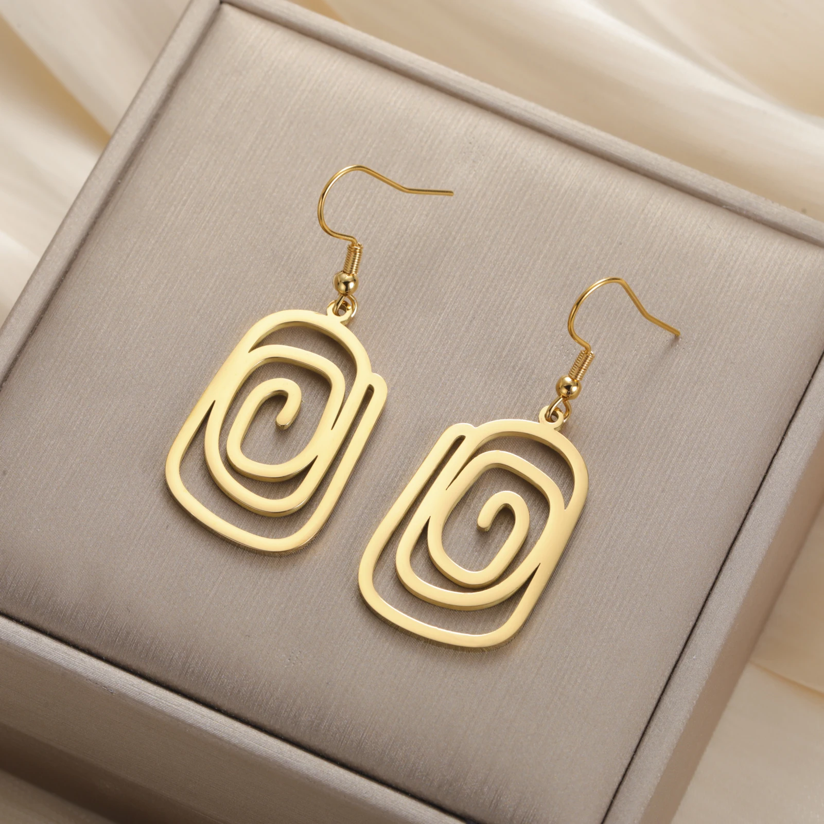 Brincos Espirais Dourados Geométricos em Aço Inoxidável – Tendência 2025