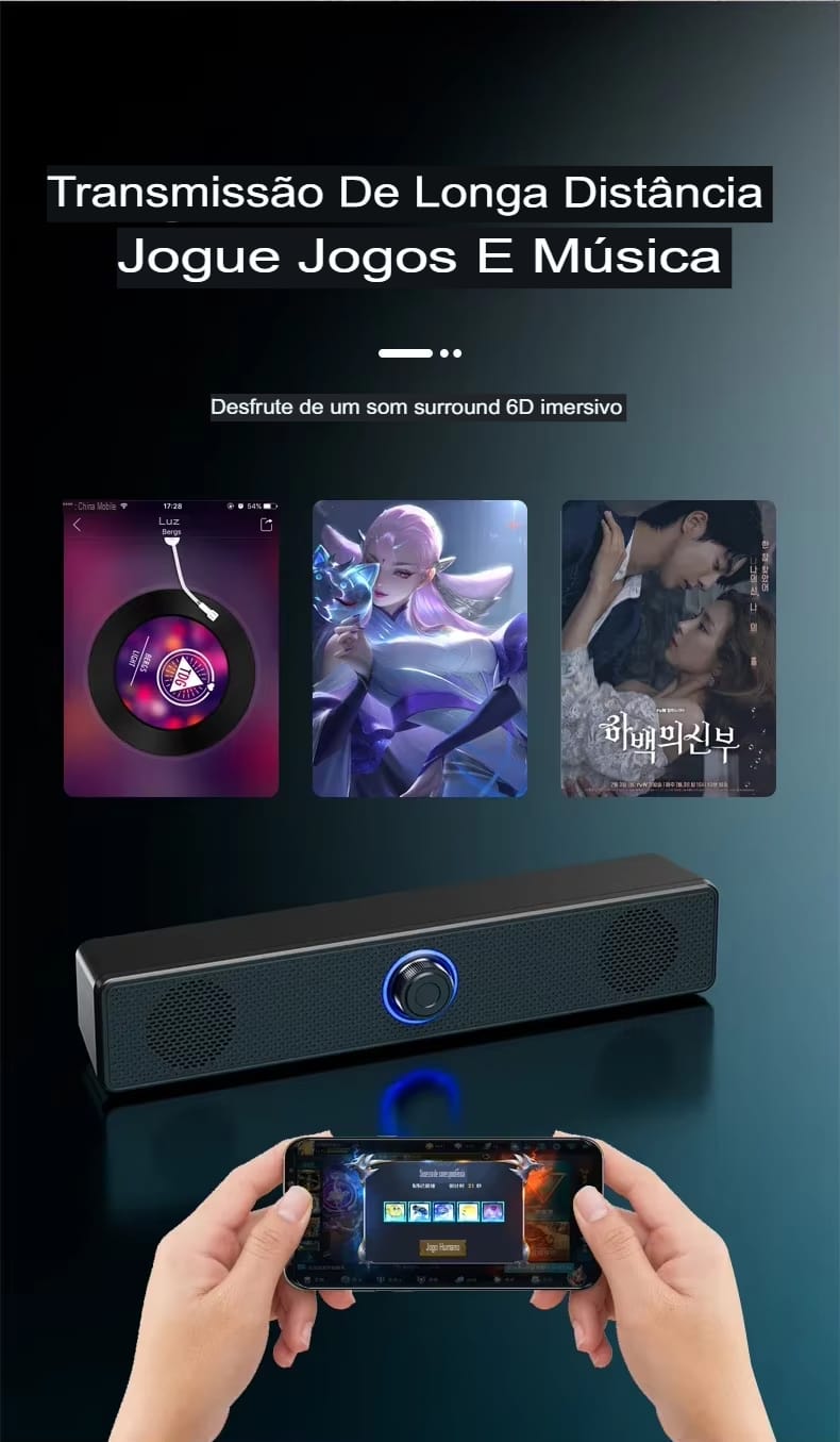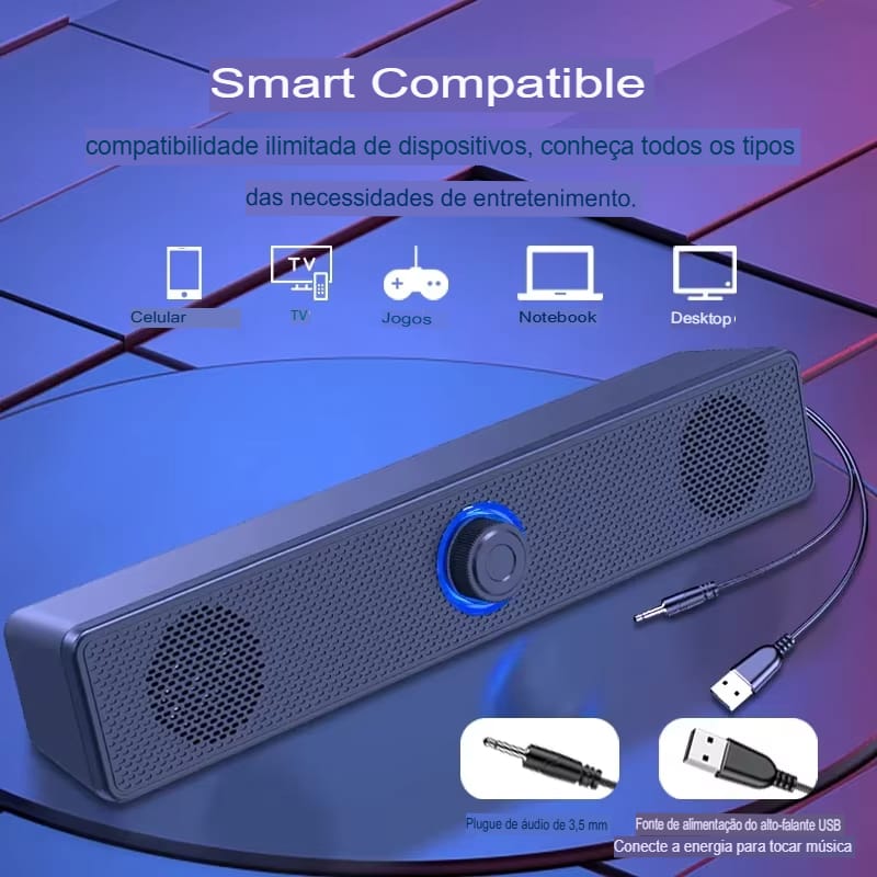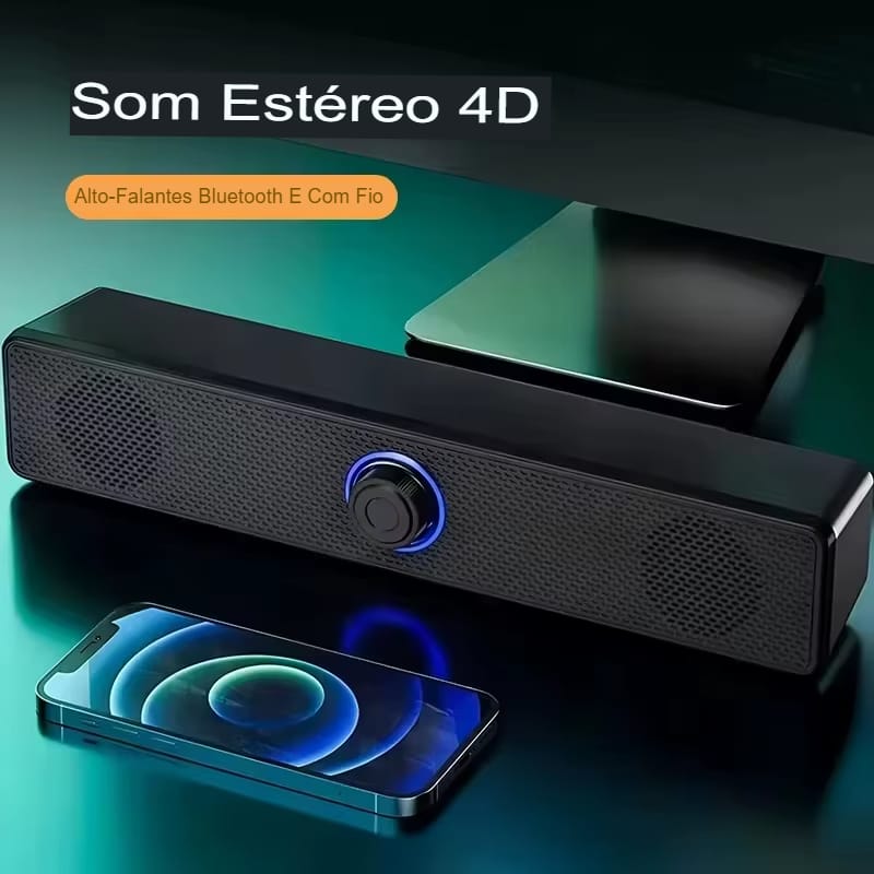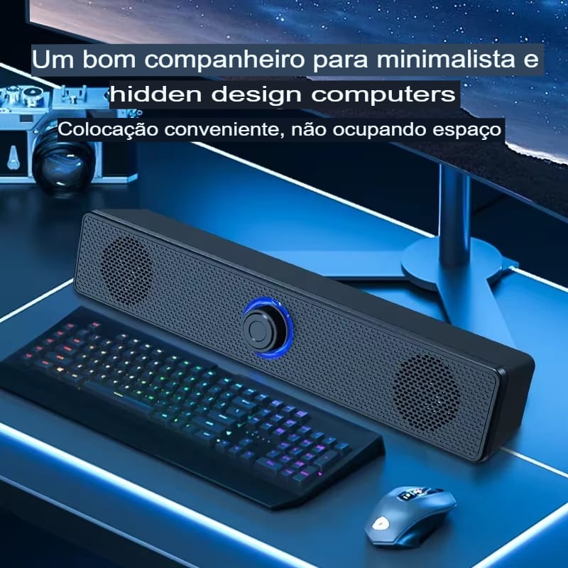 Caixa de Som Bluetooth e USB Soundbar para Computador e Jogos