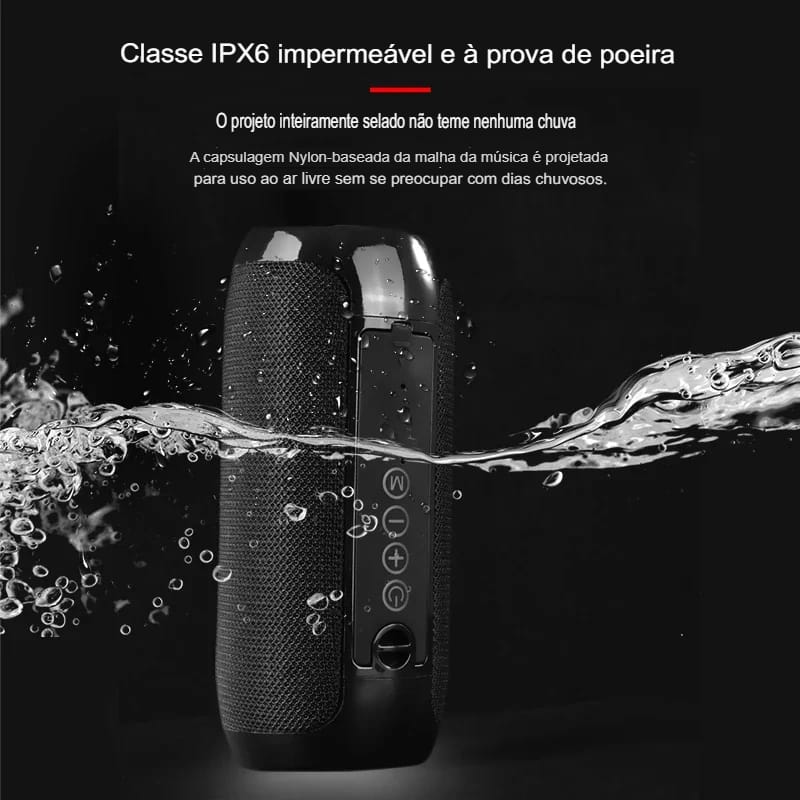 Imagine ouvir suas músicas preferidas na piscina ou praia sem preocupações! Esta caixa de som é à prova d’água, proporcionando tranquilidade em ambientes externos. Também conta com suporte a cartão TF e entrada AUX, facilitando ainda mais a conectividade com diversos dispositivos.