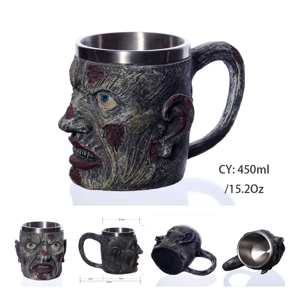 Feita com design detalhado em resina resistente e revestimento interno em aço inoxidável, esta caneca não é apenas impressionante aos olhos, mas também prática e durável. É ideal para dar aquele toque especial ao seu bar ou espaço de decoração, tornando-se uma peça central que certamente despertará a atenção e comentários dos convidados.