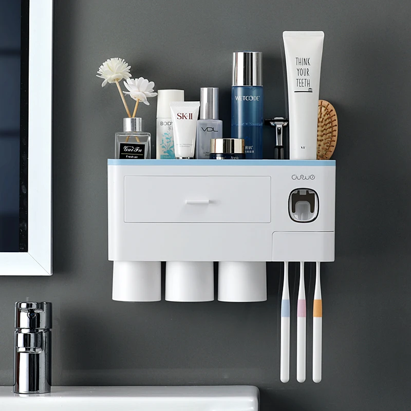 Conjunto Organizador de Acessórios para Banheiro com Suporte de Escova e Pasta