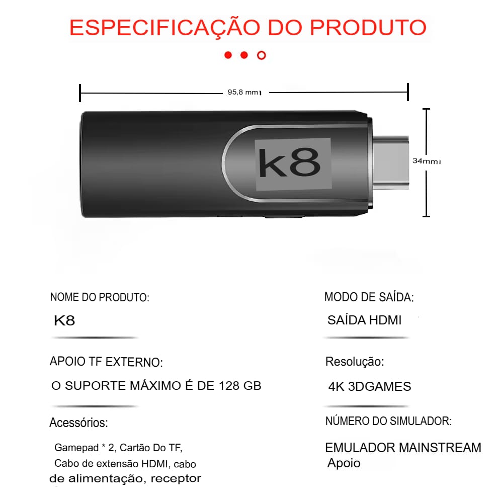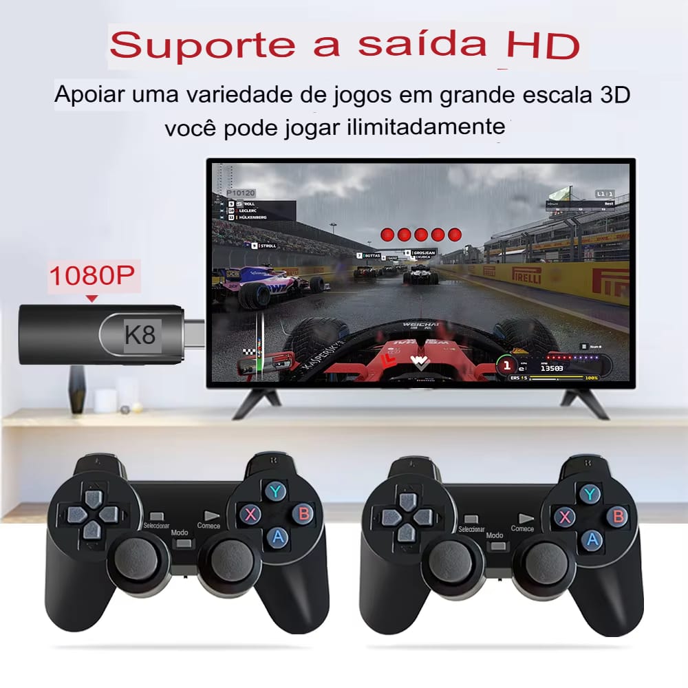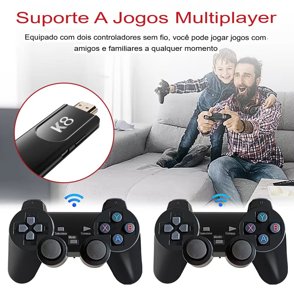 Console Retro TV Stick K8: Mais de 20.000 Jogos com Controle Sem Fio