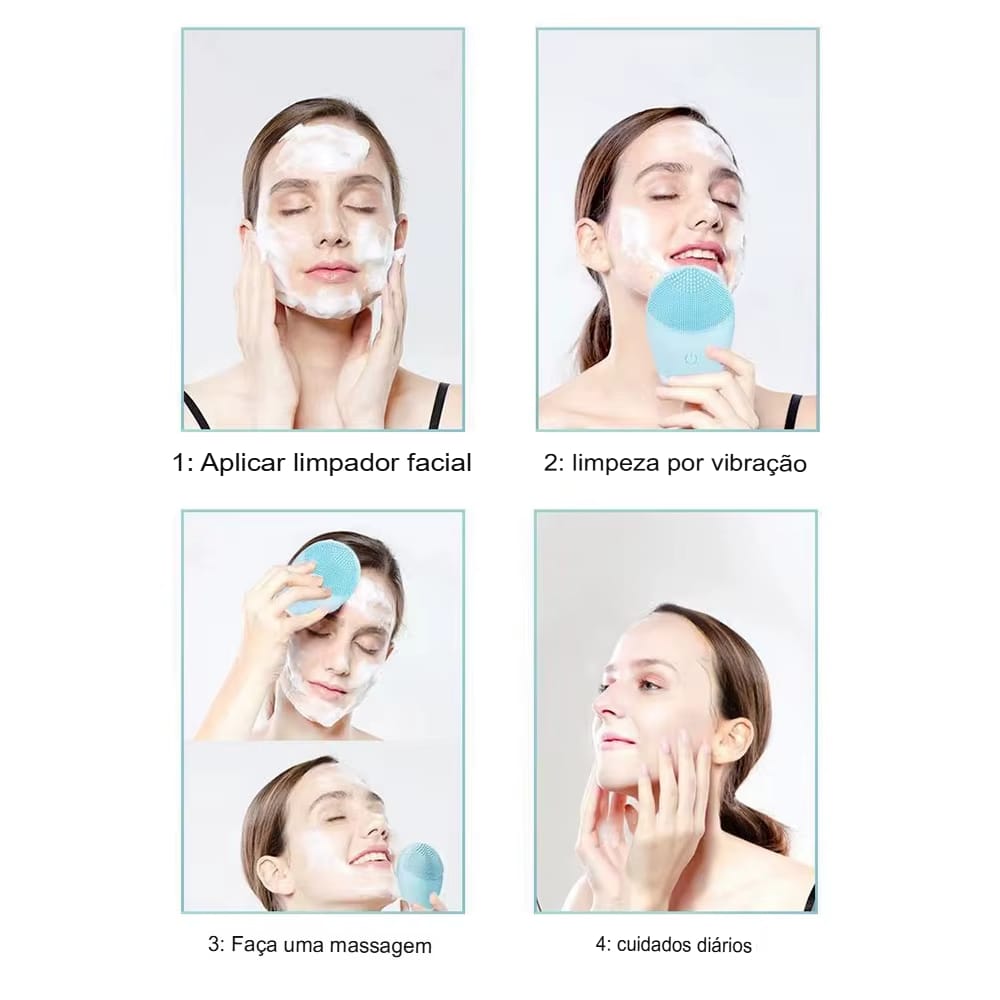 Escova Facial Elétrica de Silicone à Prova d’Água com Massagem