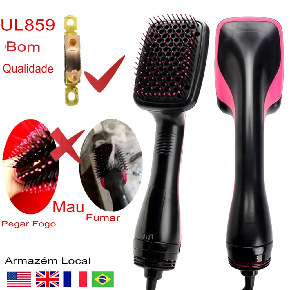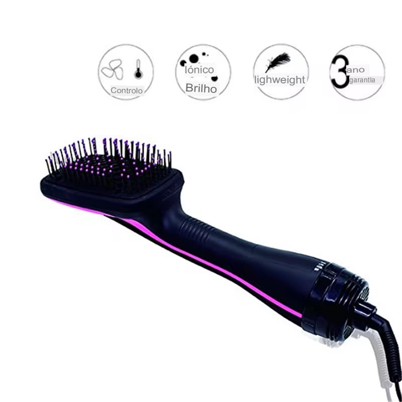 Escova Modeladora de Cabelo 3 em 1: Secador, Chapinha e Cacheador