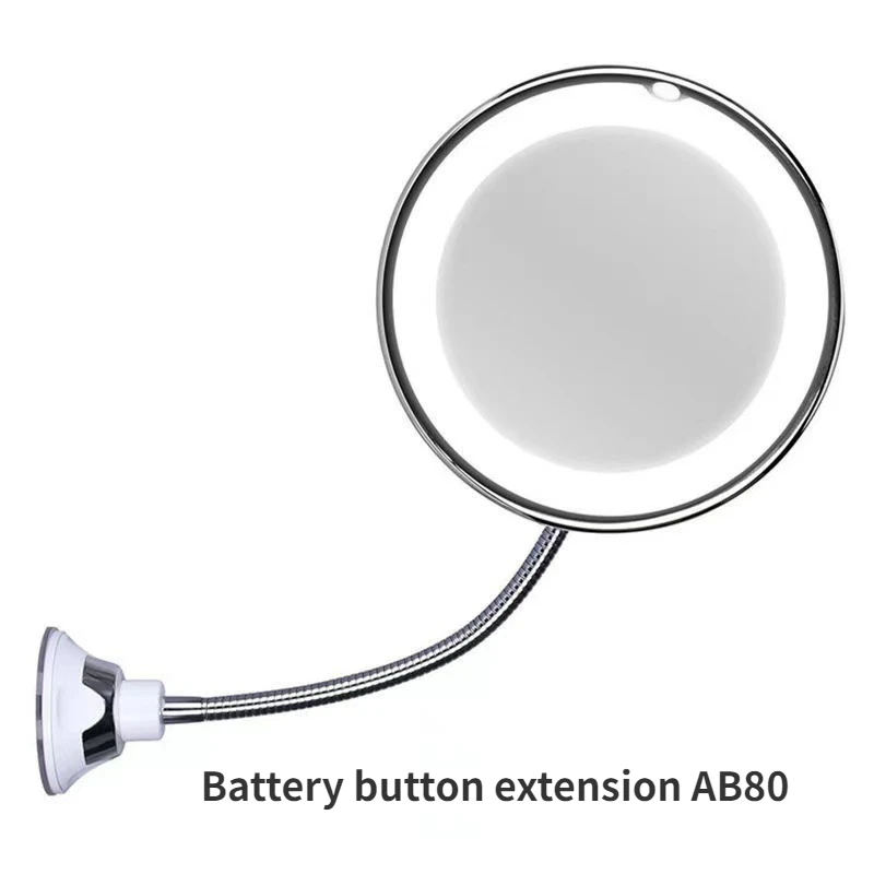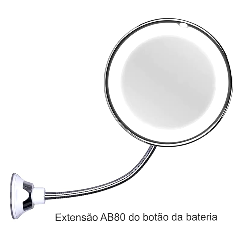 Espelho extensível com ventosa, ideal para maquiagem precisa com ampliação 10X. Facilita ajustes sem furo.