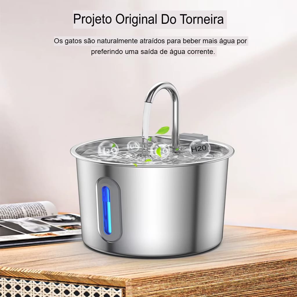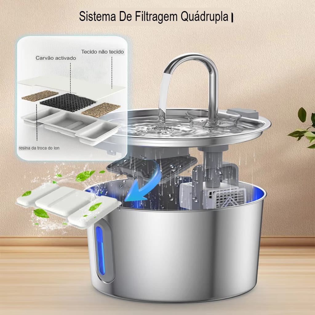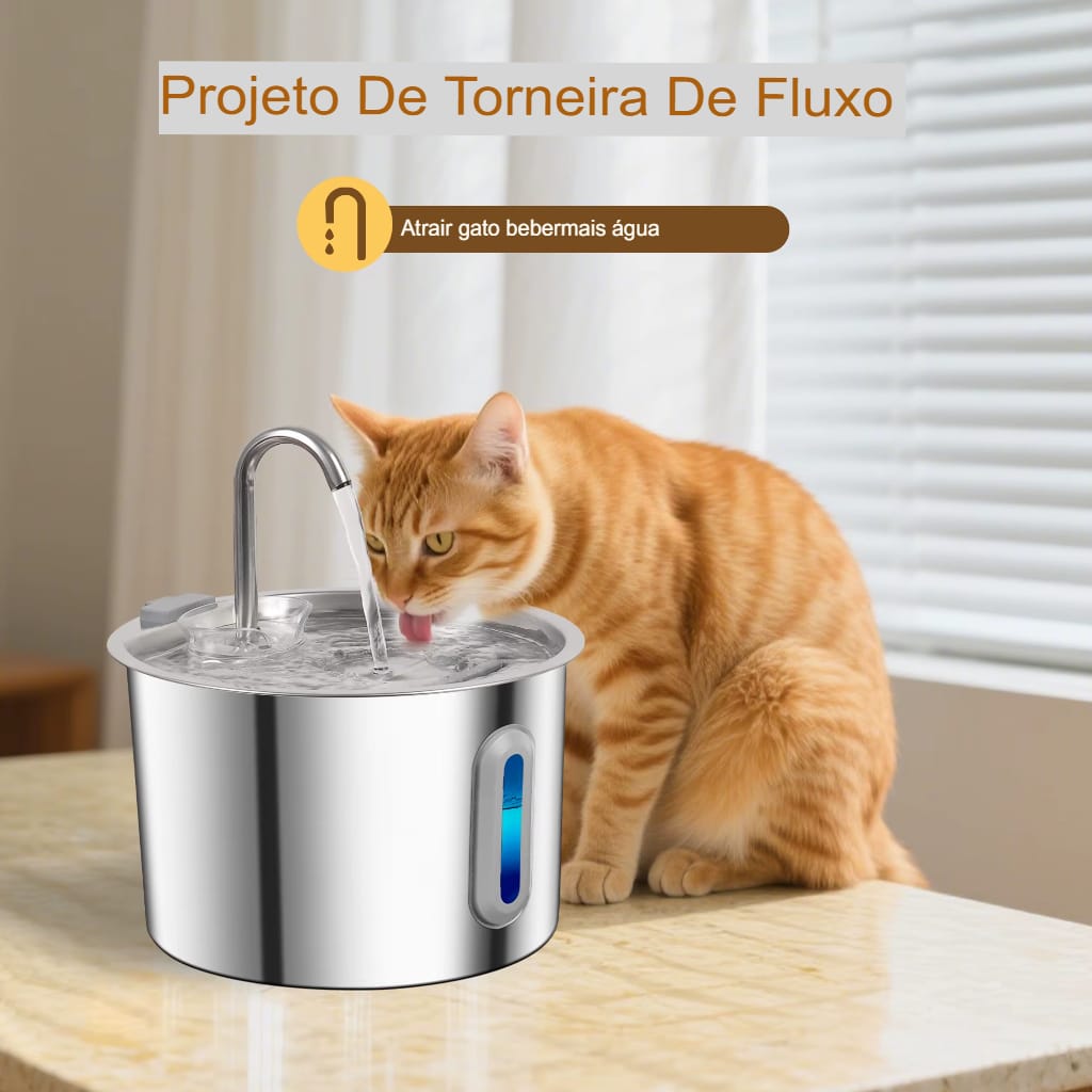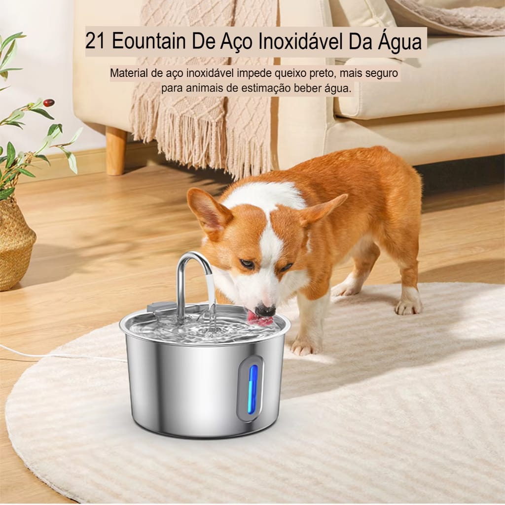 Fonte de Água Pet Inox 2.2L: Hidratação Silenciosa e Filtrada para Cães e Gatos
