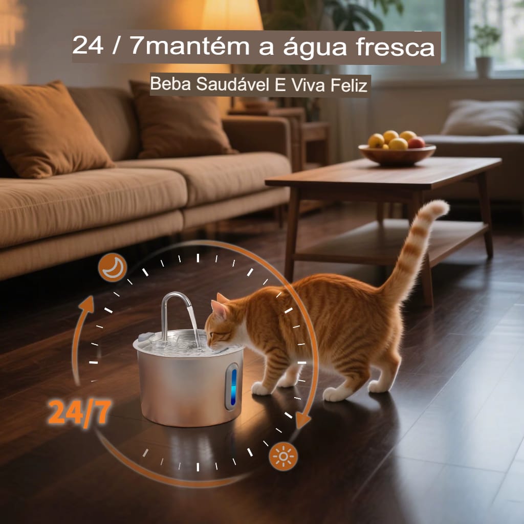 Construída em aço inoxidável premium, esta fonte é durável, higiênica e resistente à corrosão, superando plásticos comuns. Seu avançado sistema de filtragem contínua remove impurezas, pelos e odores, garantindo água pura. Além disso, a bomba ultra silenciosa assegura que seu pet não se assuste, promovendo um ambiente tranquilo e convidativo para beber a qualquer hora.