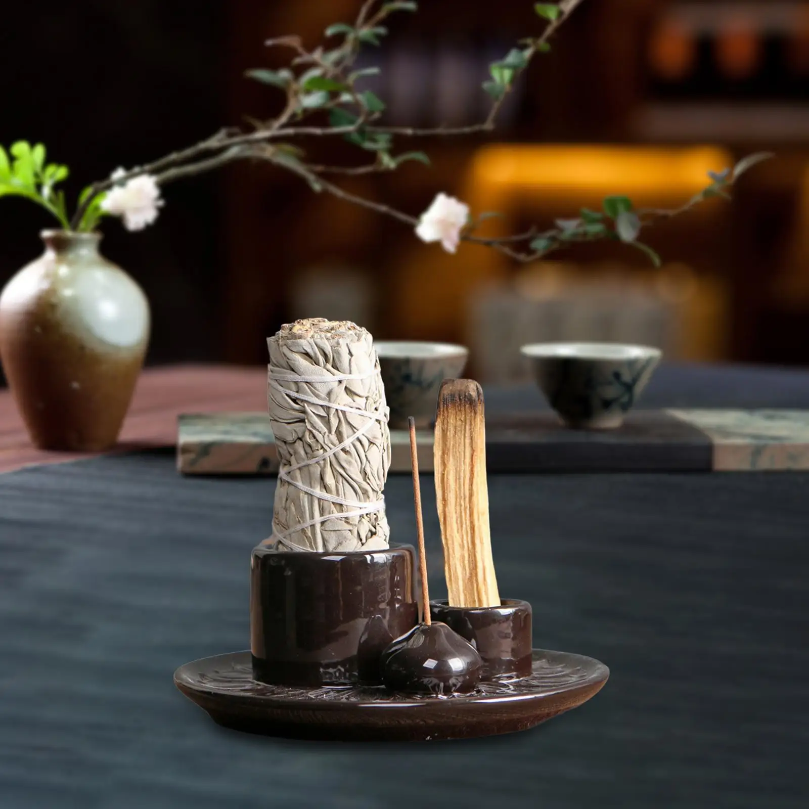 Incensário 4 em 1: Porta-velas, Incensos, Sálvia e Palo Santo em Cerâmica