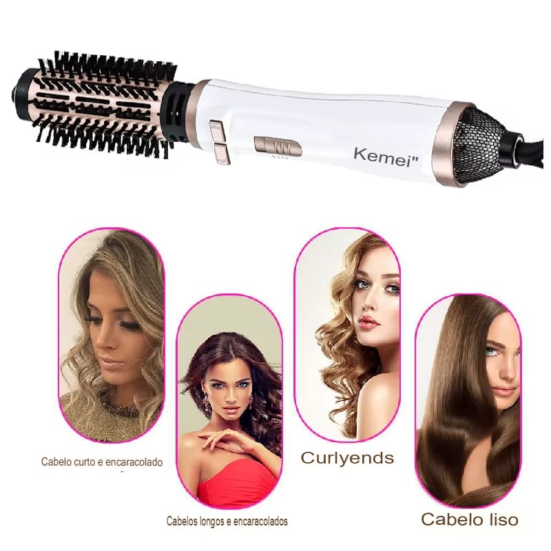 A Kemei Escova Rotativa 2 em 1 alia praticidade ao design inovador para criar visuais incríveis.