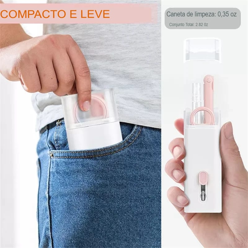 Mantenha seus gadgets impecáveis com o Kit de Limpeza Multiuso 7 em 1. Portátil e eficiente!