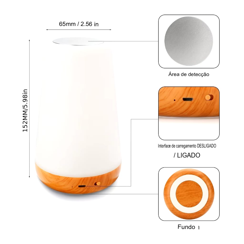 Ainda traz a praticidade do carregamento por USB, permitindo que você posicione a luminária em qualquer lugar sem restrições de tomadas. Possui temporizador automático para desligamento programado, promovendo segurança e economia elétrica. É também um presente incrível para eventos como festas, casamentos e aniversários!
