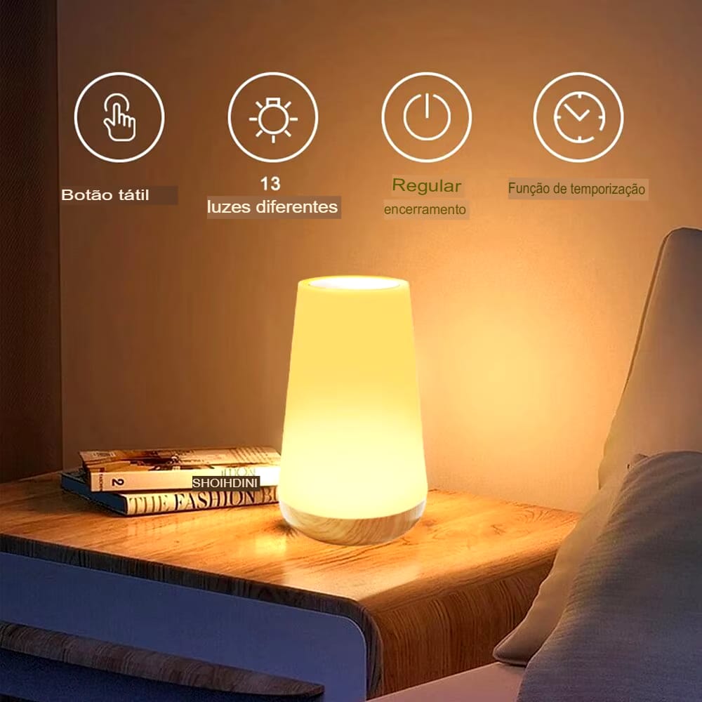 Luminária de Mesa Touch com 13 Cores e Controle Remoto