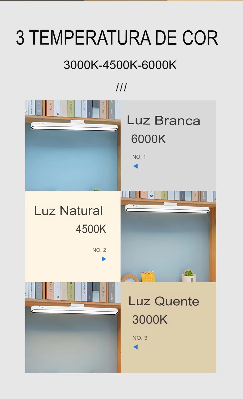 Compacta e versátil, a luminária possui três modos de temperatura de cor (3000K, 4500K, 6000K) facilmente ajustáveis via toque ou controle remoto. A tecnologia sem luz azul é perfeita para reduzir o cansaço visual em longas horas de leitura ou trabalho.