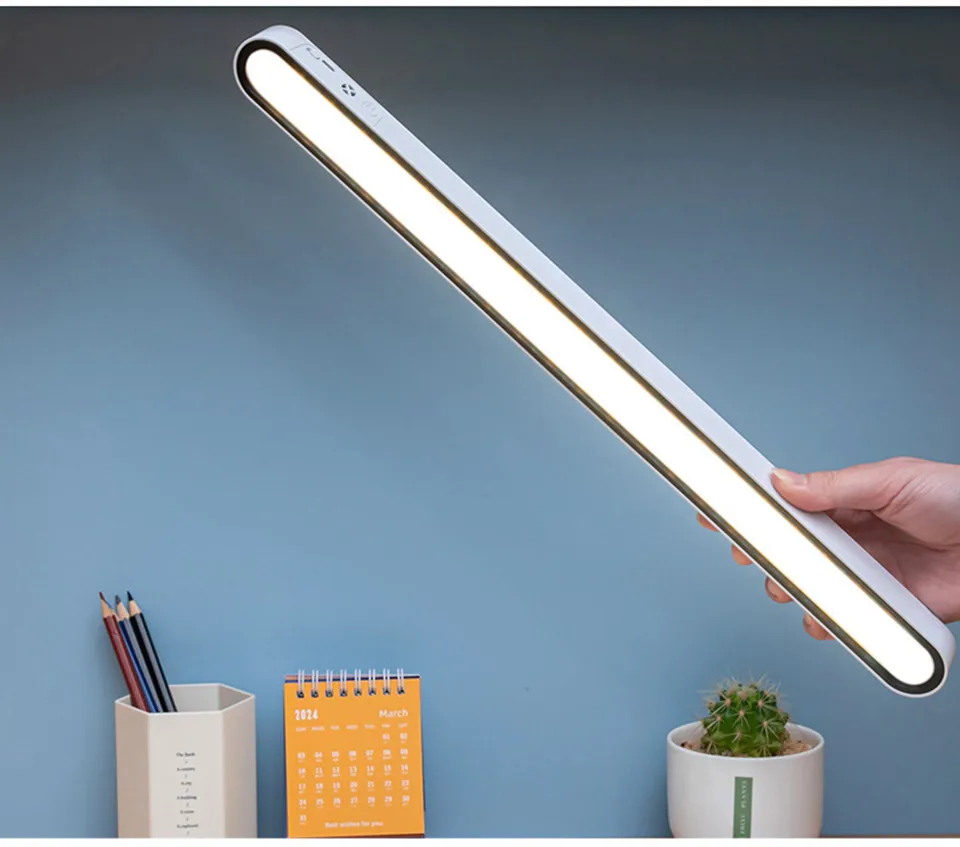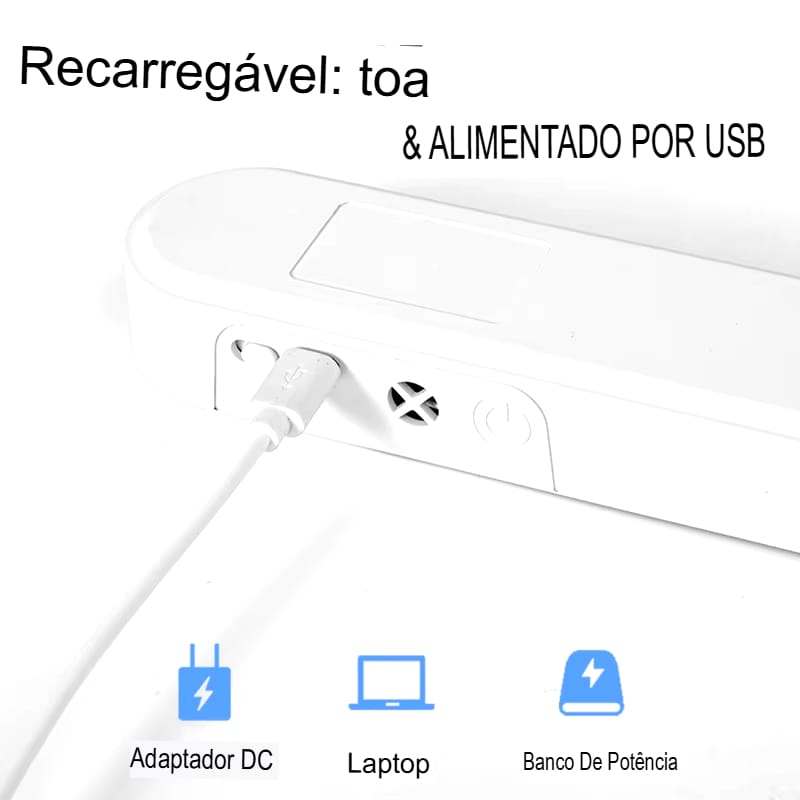 Luminária LED magnética com ajuste por toque/remoto. Iluminação suave sem luz azul. Até 30h.