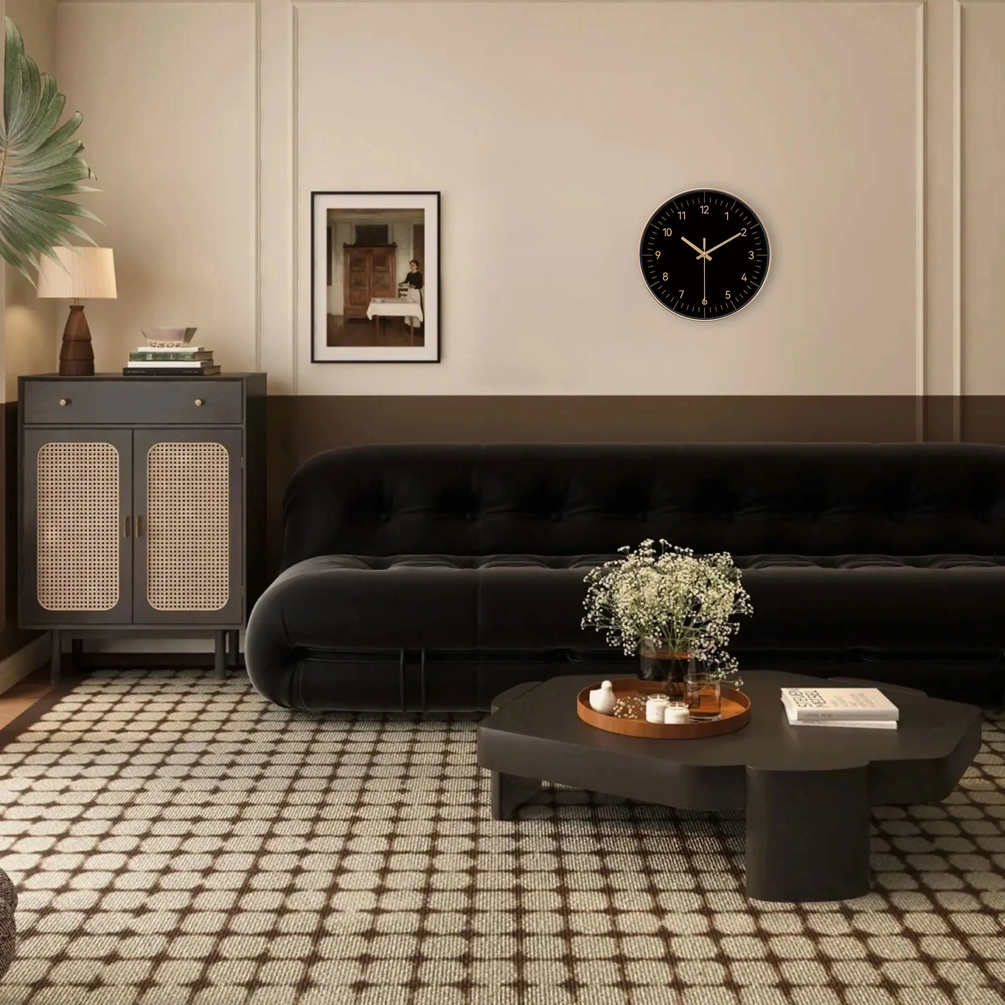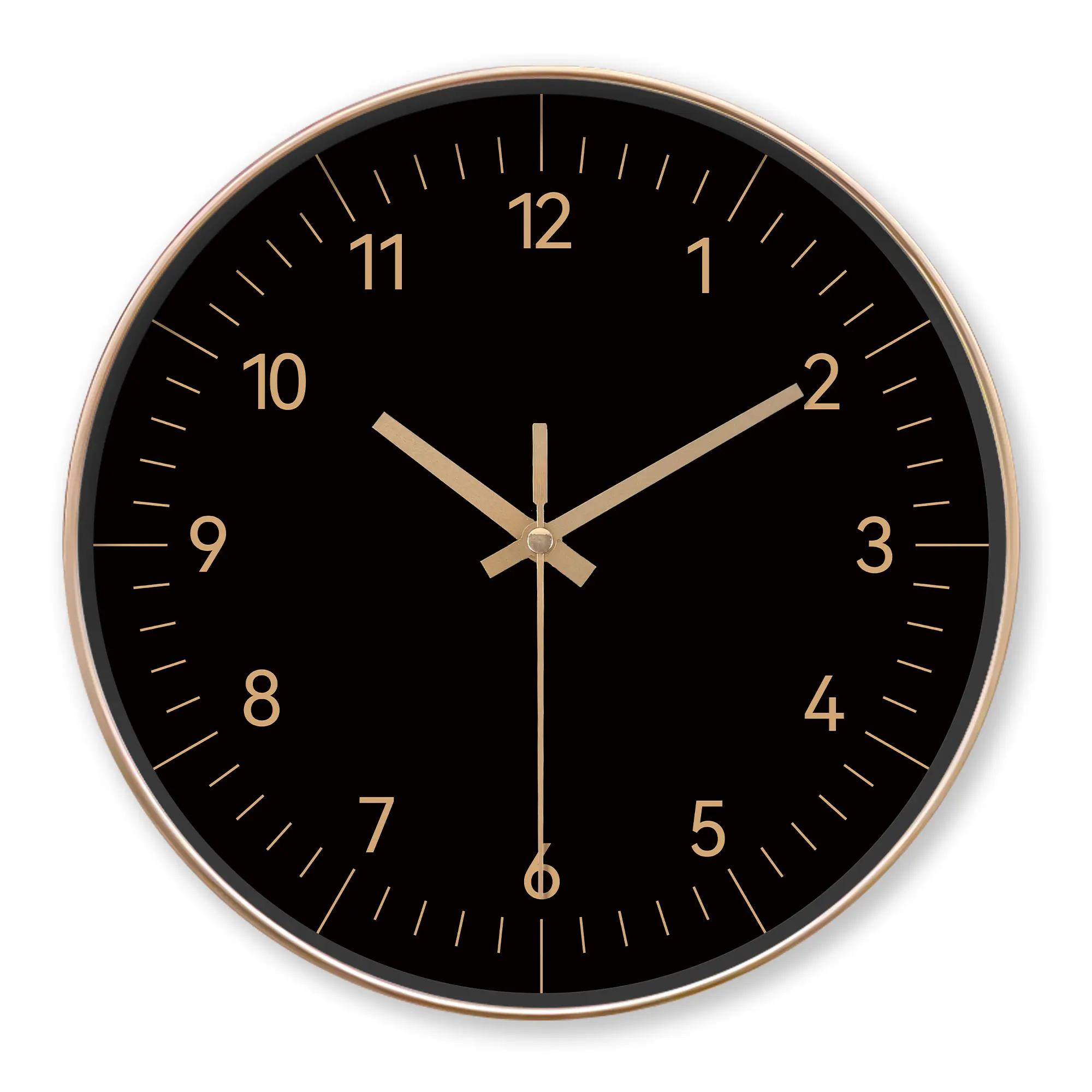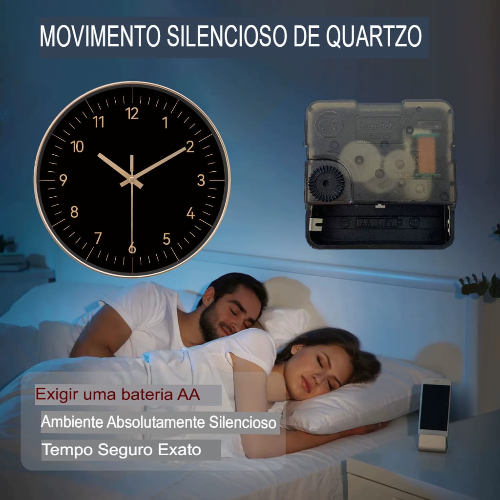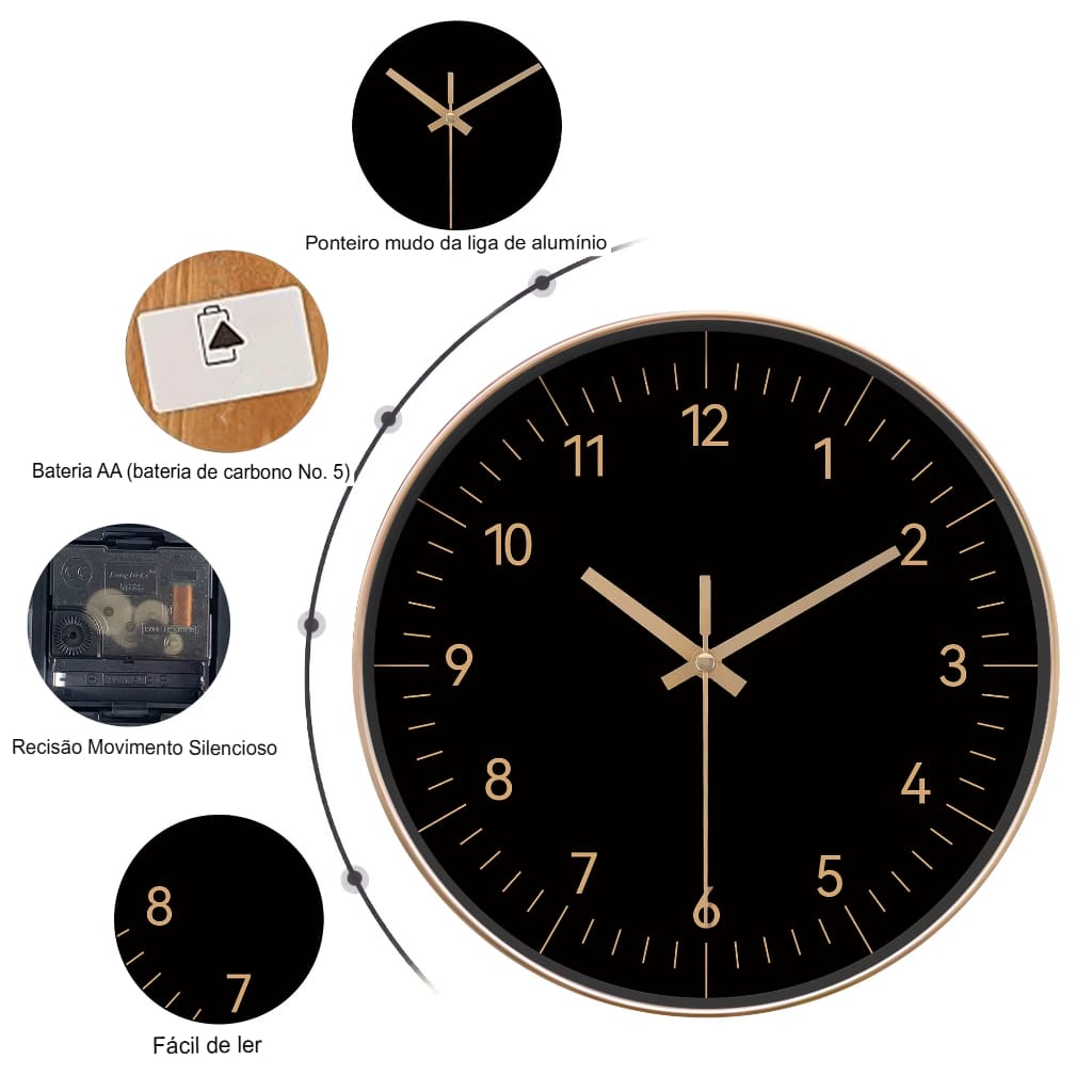Relógio de Parede Minimalista Preto e Dourado Silencioso e Elegante para Decoração