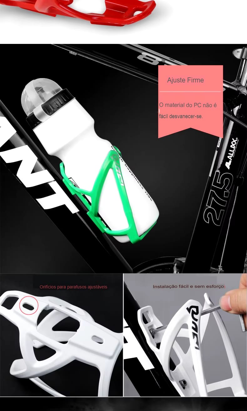 A instalação é rápida e simples, adaptando-se facilmente a diferentes tamanhos de quadros de bicicleta. Seja no asfalto ou nas trilhas, este suporte confere estabilidade à garrafa, evitando quedas e derramamentos indesejados.