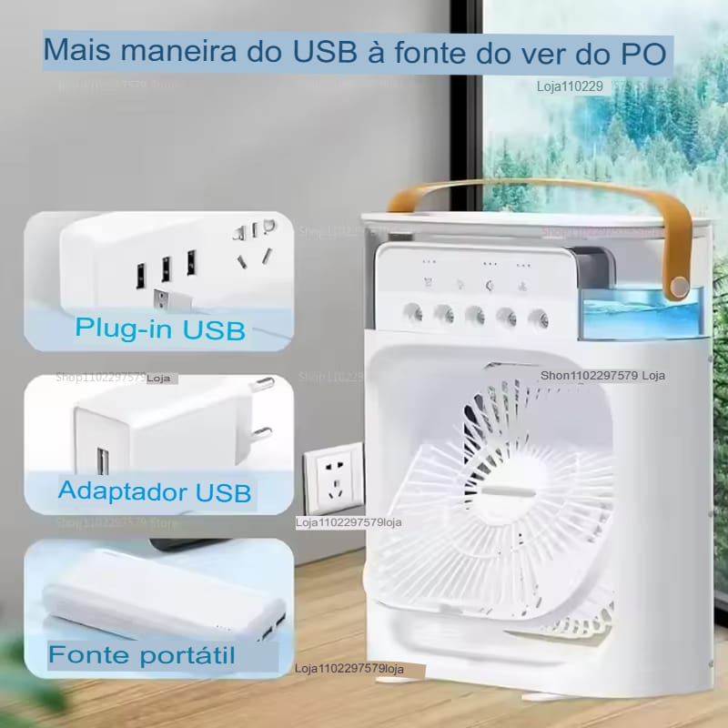 Ventilador Refrigerador Portátil 3 em 1 com Umidificador e Luz LED