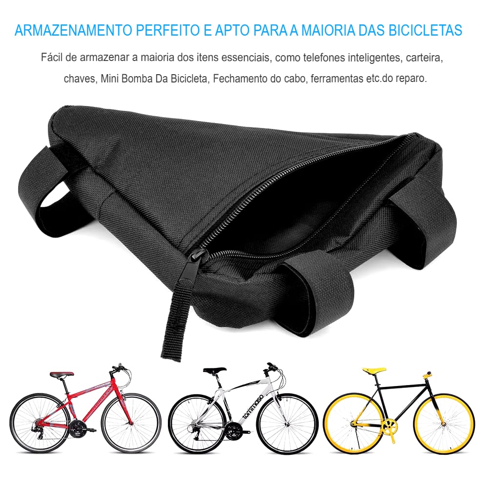Leve, resistente e funcional, a Bolsa de Quadro para Bicicleta acompanha você em todas as suas aventuras ciclísticas, tornando cada trajeto mais confortável e organizado.