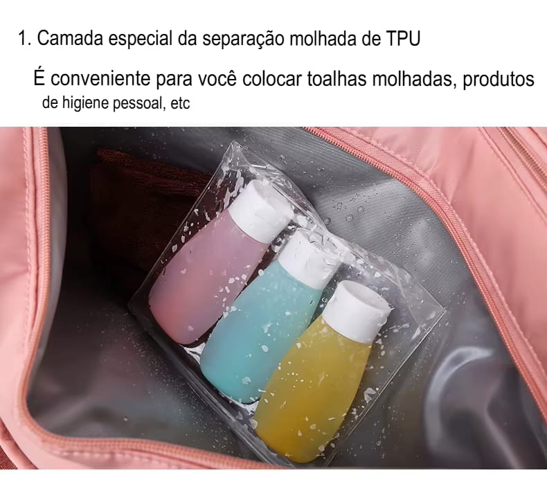 Descubra a liberdade de levar tudo o que precisa com a nossa Bolsa de Viagem e Academia Multifuncional. Projetada para quem vive em movimento, esta bolsa inteligente é o companheiro perfeito para seus treinos, viagens curtas ou aventuras ao ar livre. Diga adeus à bagunça e olá à praticidade, com um design moderno e capacidade surpreendente para organizar seus itens essenciais com facilidade.