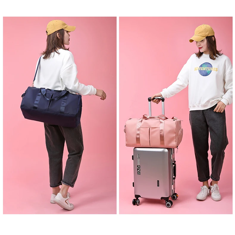 Bolsa de viagem e academia impermeável e multifuncional. Possui compartimento para sapatos e separação seco/molhado, mantendo seus pertences organizados e protegidos. Ideal para fitness, natação, yoga e viagens curtas, com design moderno e alça para mala. Praticidade e estilo em um só produto.