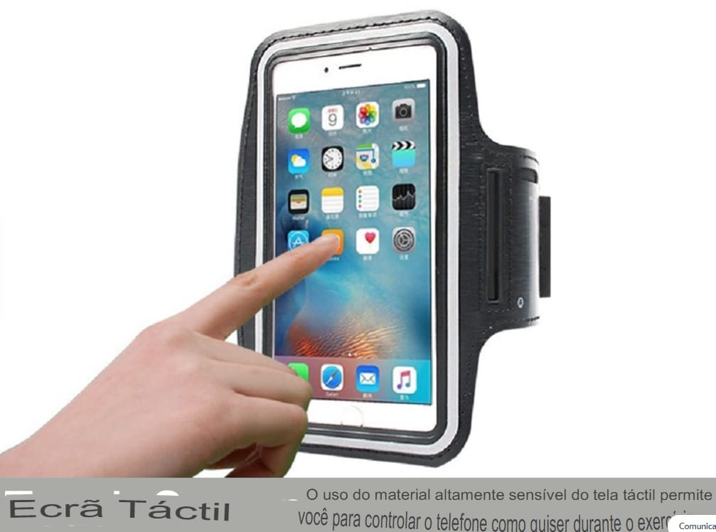Compatível com celulares de 11,40 a 15.25 cm, ela oferece ajuste seguro e confortável no braço, permitindo fácil acesso à tela sensível ao toque do aparelho.