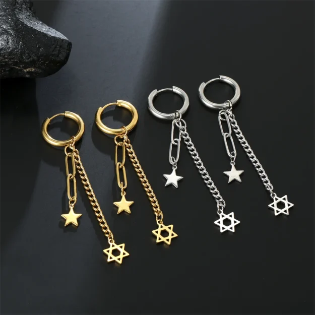 Brincos Amaxer Estrela de Davi em aço inoxidável: duráveis, estilosos e ideais para eventos especiais.