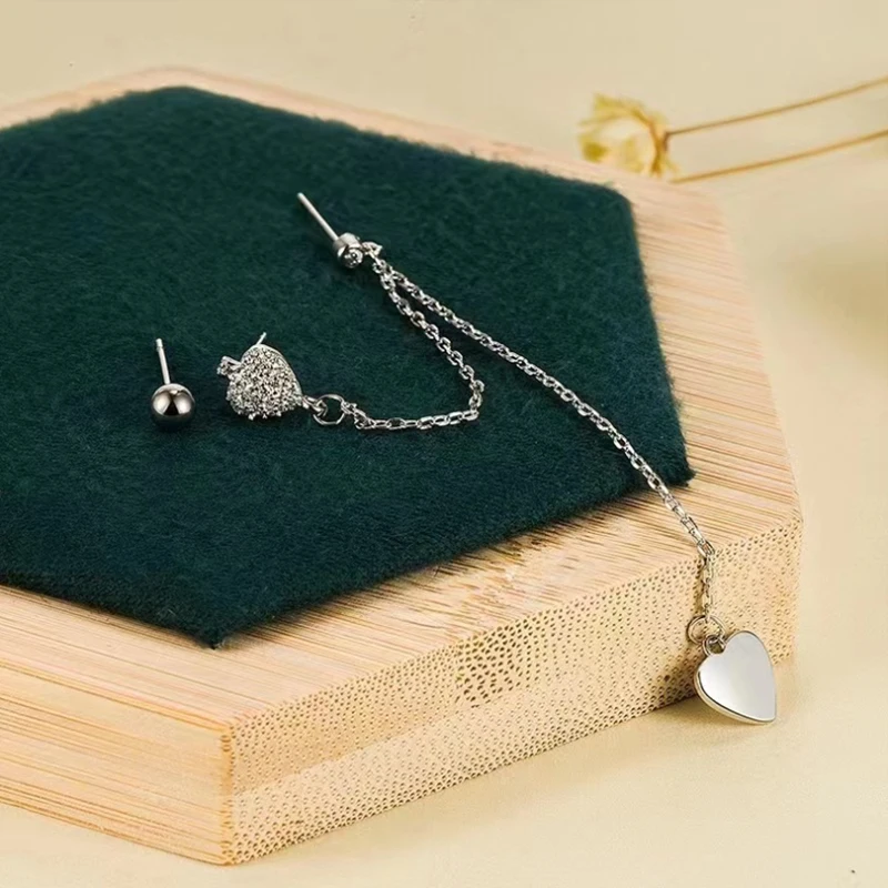 Apresentamos os deslumbrantes brincos assimétricos de prata esterlina, especialmente elaborados para quem adora adicionar um toque de estilo e elegância ao dia a dia. Com sua forma única de coração duplo, esses brincos são perfeitos para aquelas ocasiões em que você deseja expressar o seu amor e charme.
