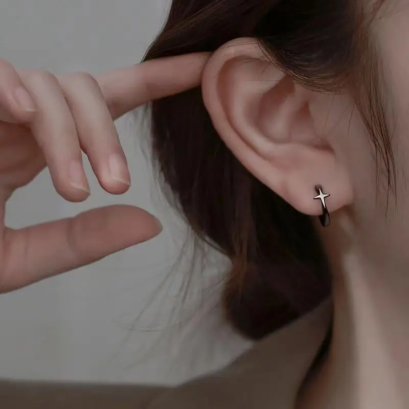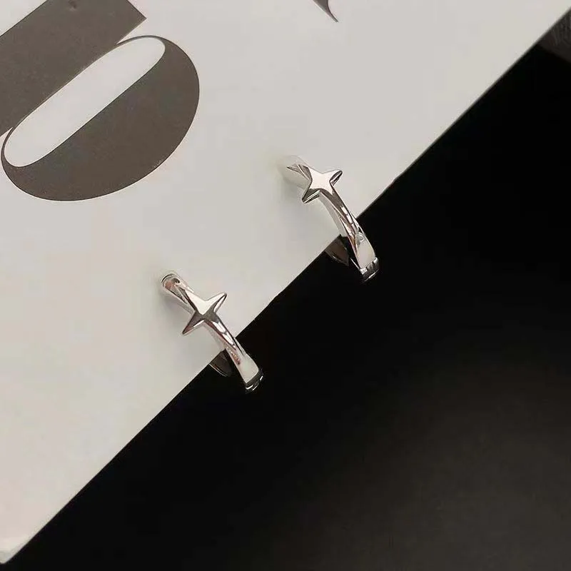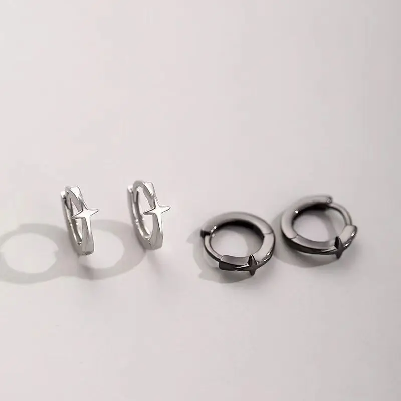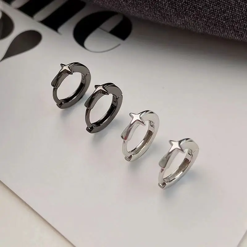 Brincos Punk Estrela Metal Prateado para Mulheres e Homens