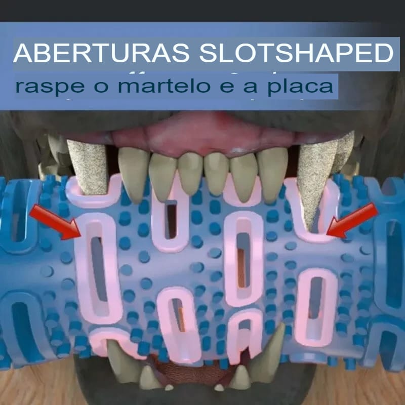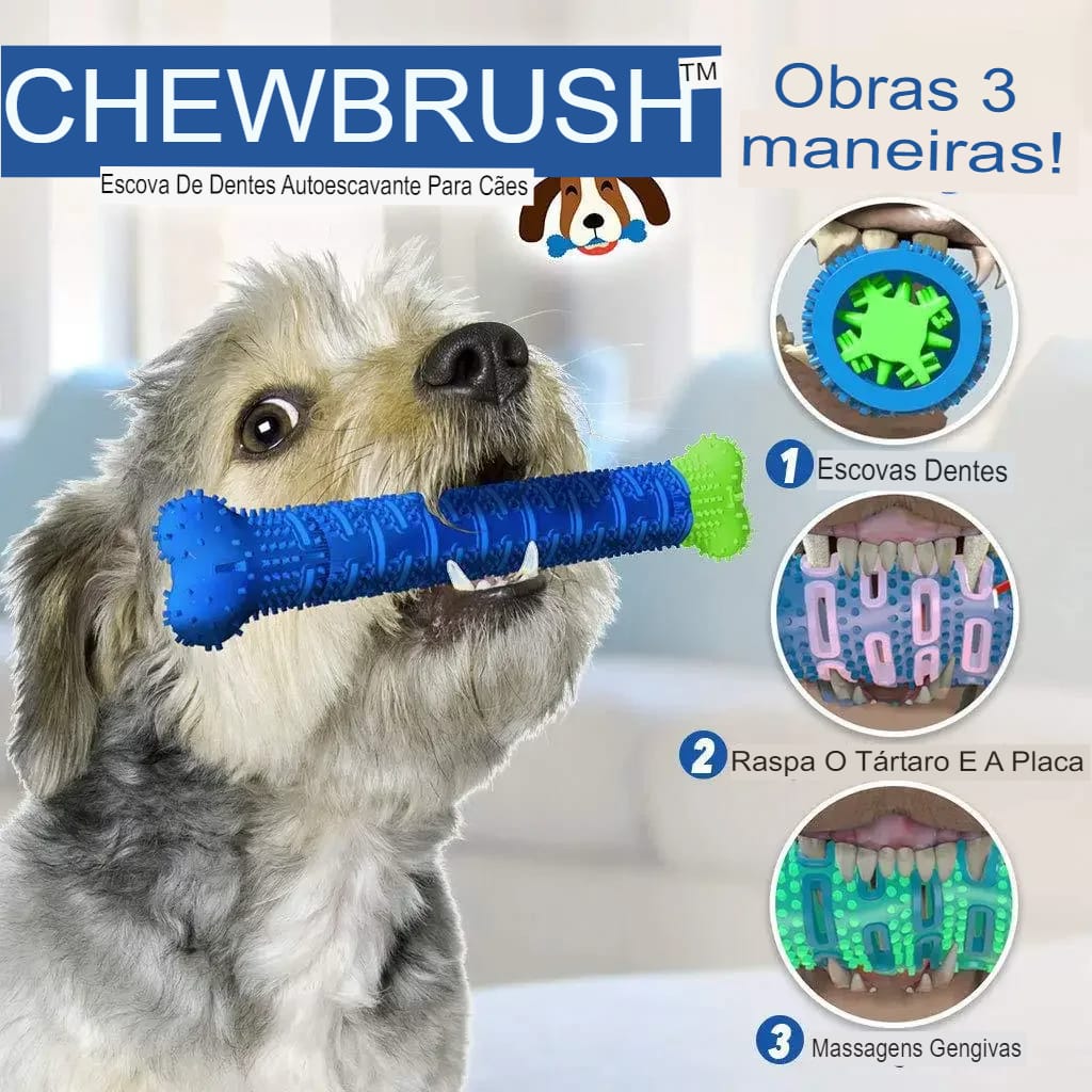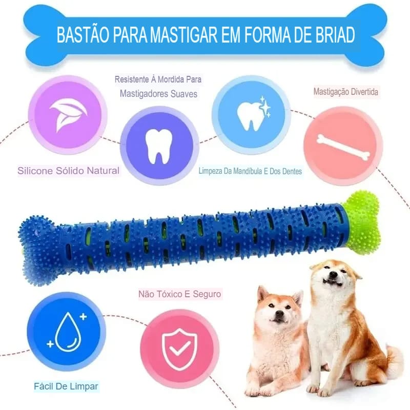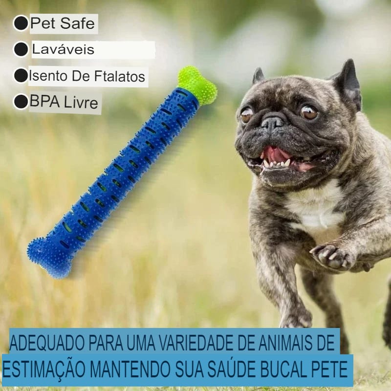 Brinquedo mastigável para cães que limpa os dentes, massageia as gengivas e melhora a saúde bucal.