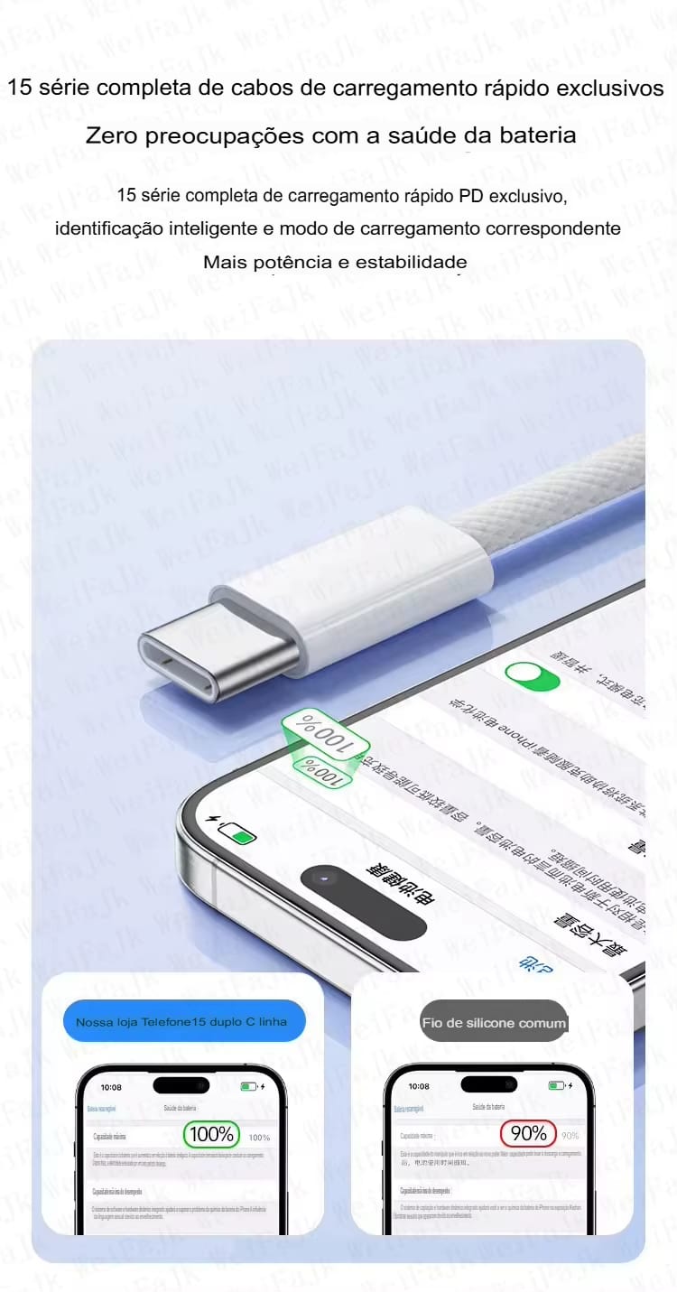 Apresentamos o Cabo de Carregamento Rápido 30W, ideal para quem busca eficiência e rapidez ao carregar seus dispositivos Apple. Compatível com uma ampla gama de iPhones, incluindo as versões mais recentes, esse cabo garante que você não perca tempo enquanto carrega seu aparelho.
