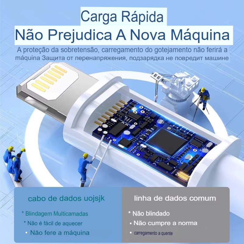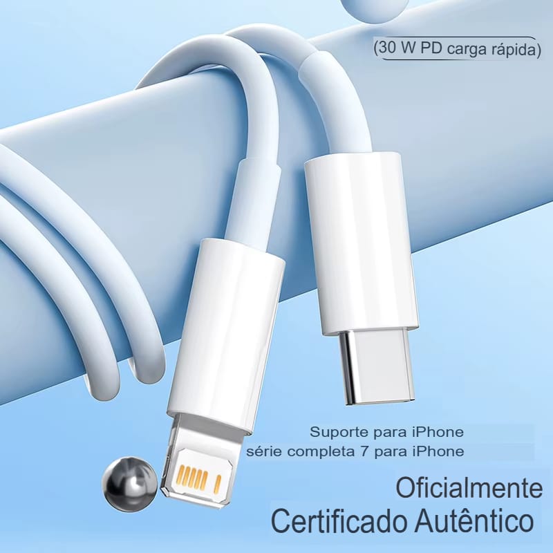 Cabo USB C Lightning 30W: rápido, eficiente e seguro para carregamento e transferência de dados.