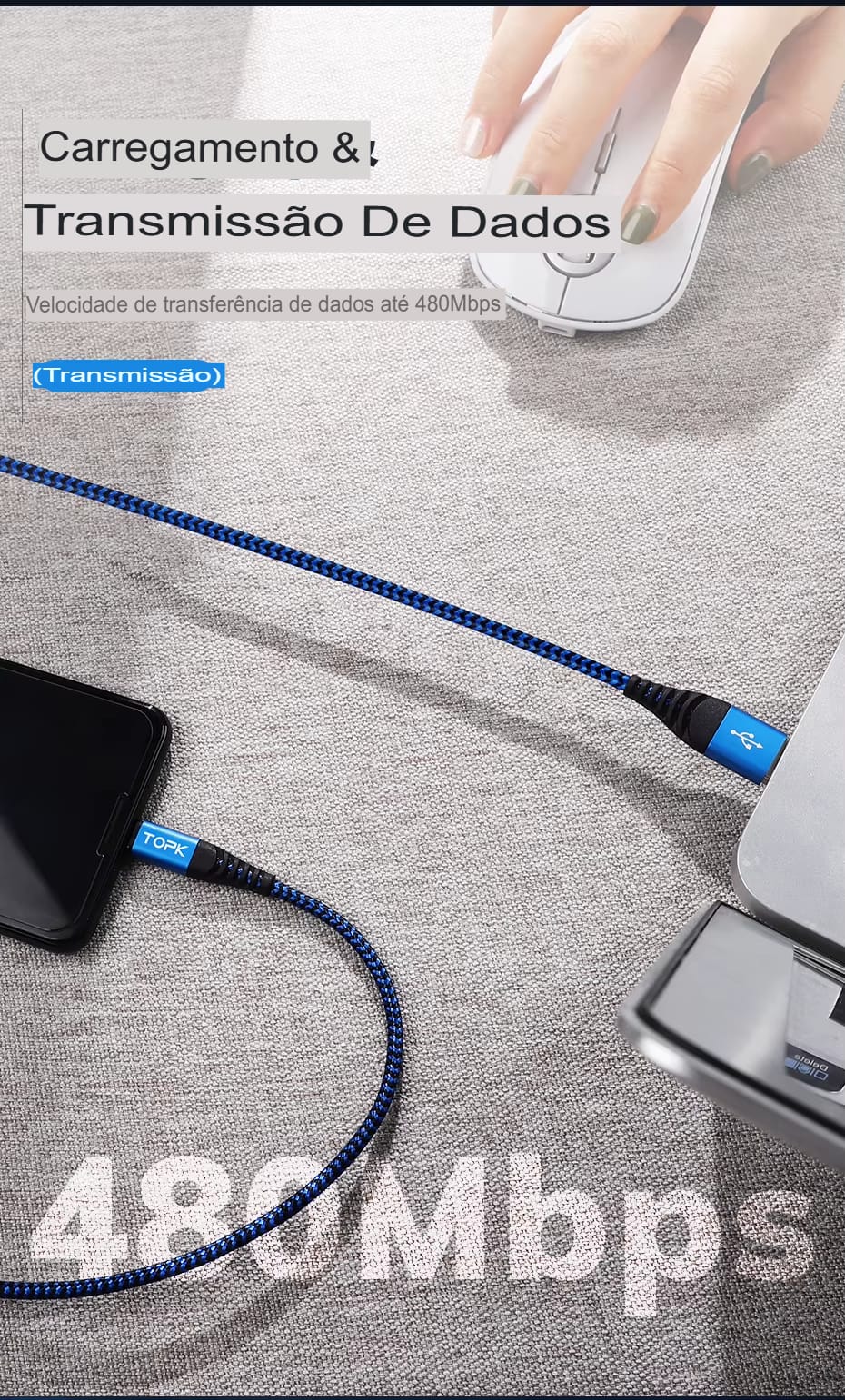 Quer acelerar o carregamento dos seus dispositivos com um acessório confiável e resistente? O Cabo USB-C 6.6ft TOPK é a solução ideal! Com carregamento rápido de até 3A, ele garante energia suficiente para manter seu smartphone sempre ativo.
