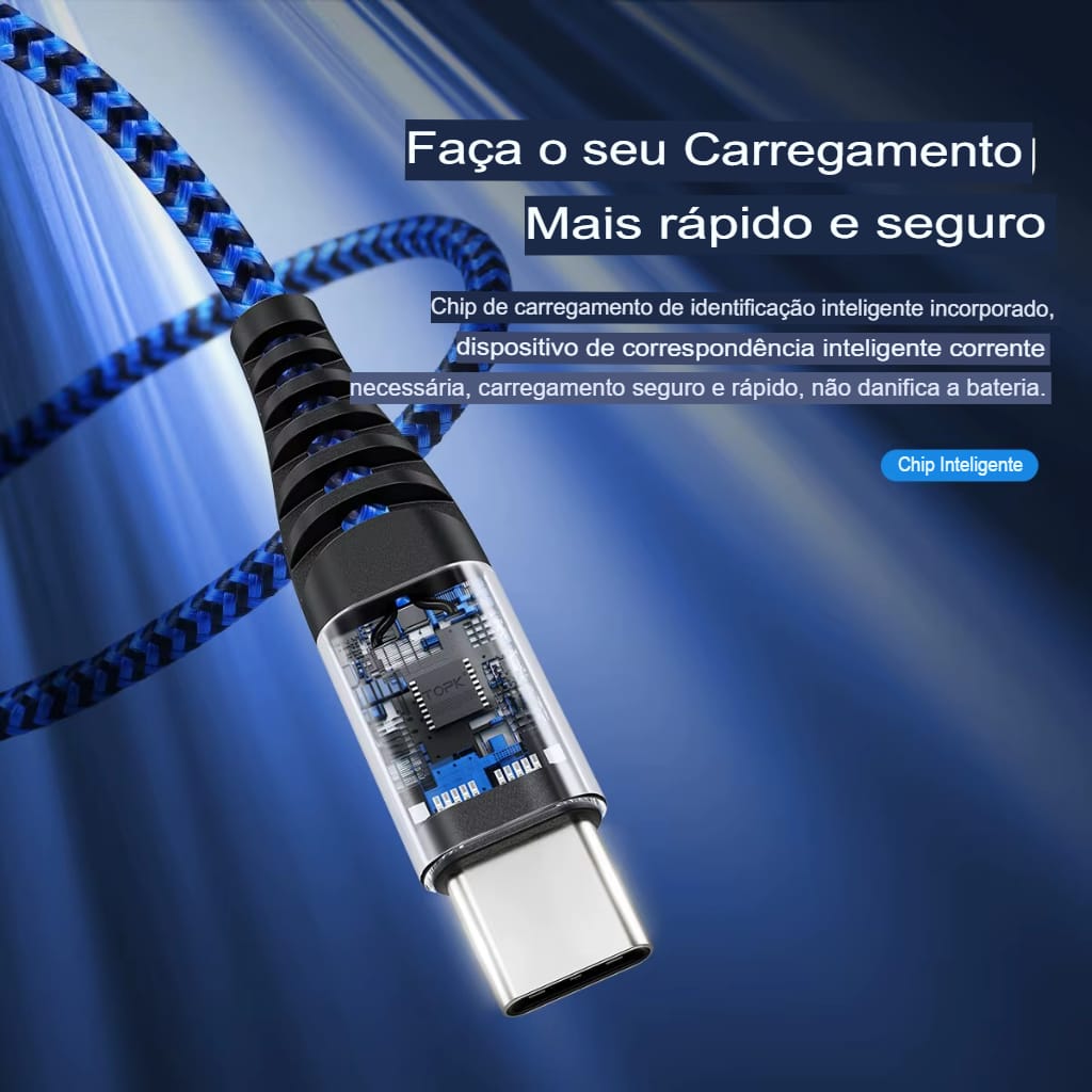 Cabo USB-C de 1m e 2m para Carregamento Rápido Compativel com Samsung e Outros