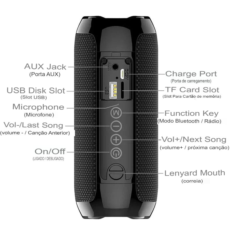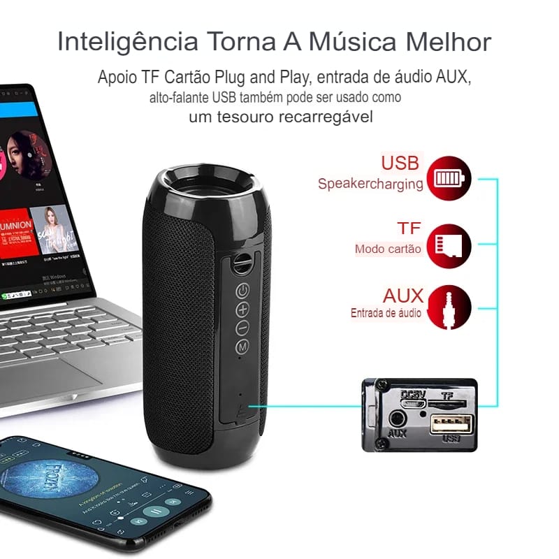 Caixa de Som Bluetooth Portátil com Suporte a Cartão TF e Bateria Integrada