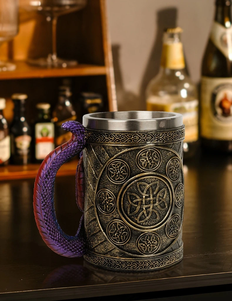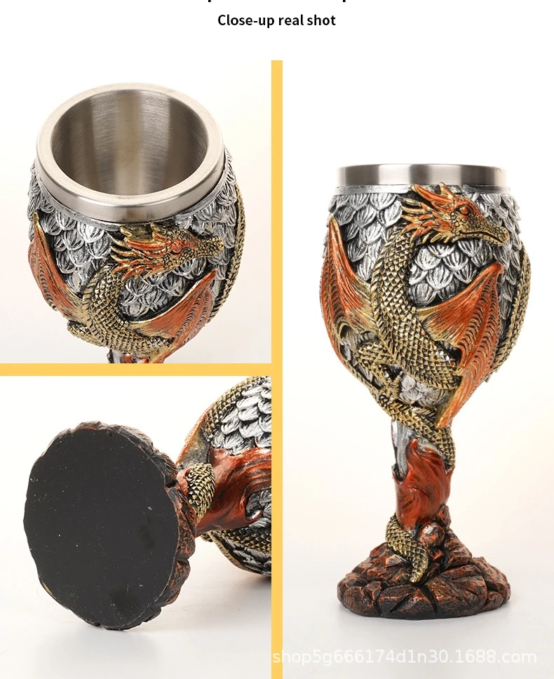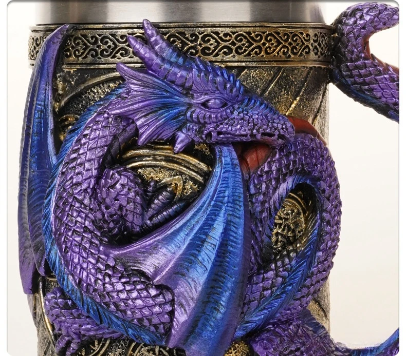 Com acabamento de resina detalhada imitando um dragão, combinado com o interior de aço inoxidável 304, ela mantém sua bebida fria por mais tempo. O design ergonômico da alça faz com que seja confortável segurar a caneca, tornando o ato de beber ainda mais prazeroso.