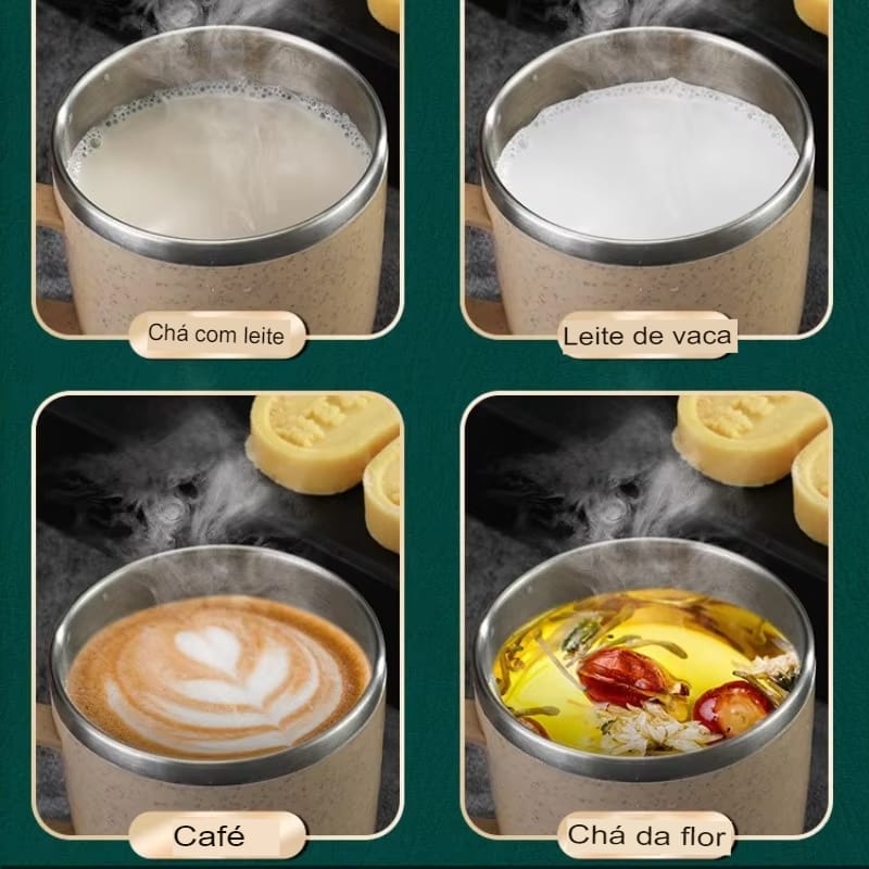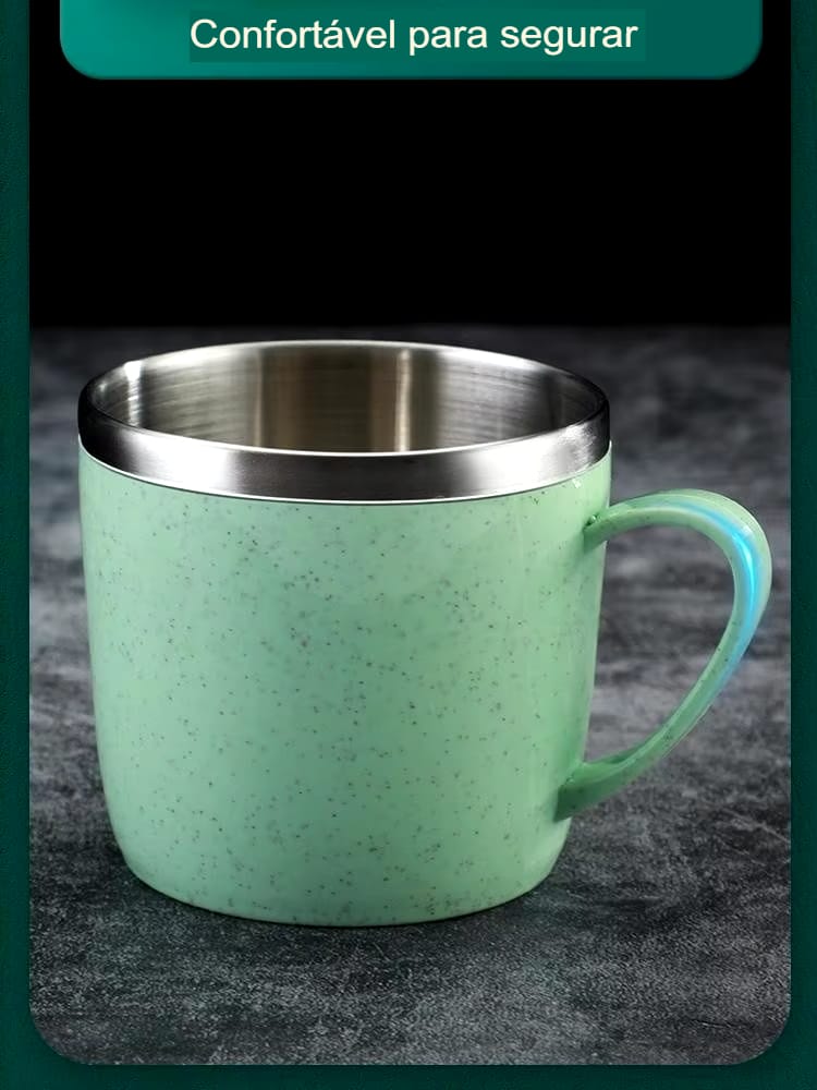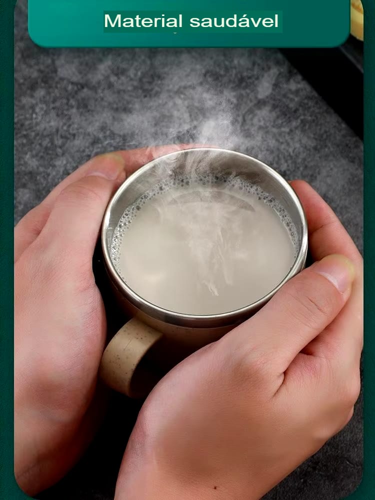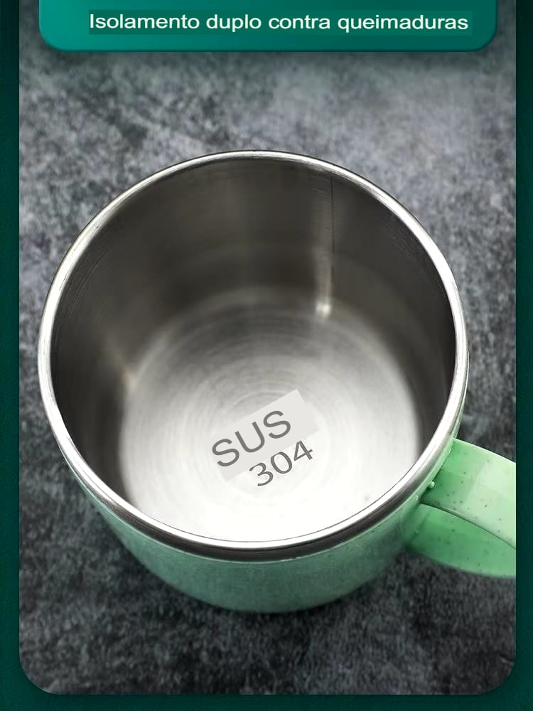Caneca de Aço Inoxidável Antiescaldante, Versátil e com Alça Plástica