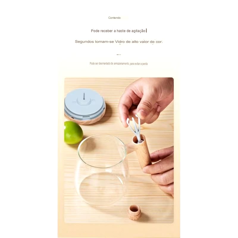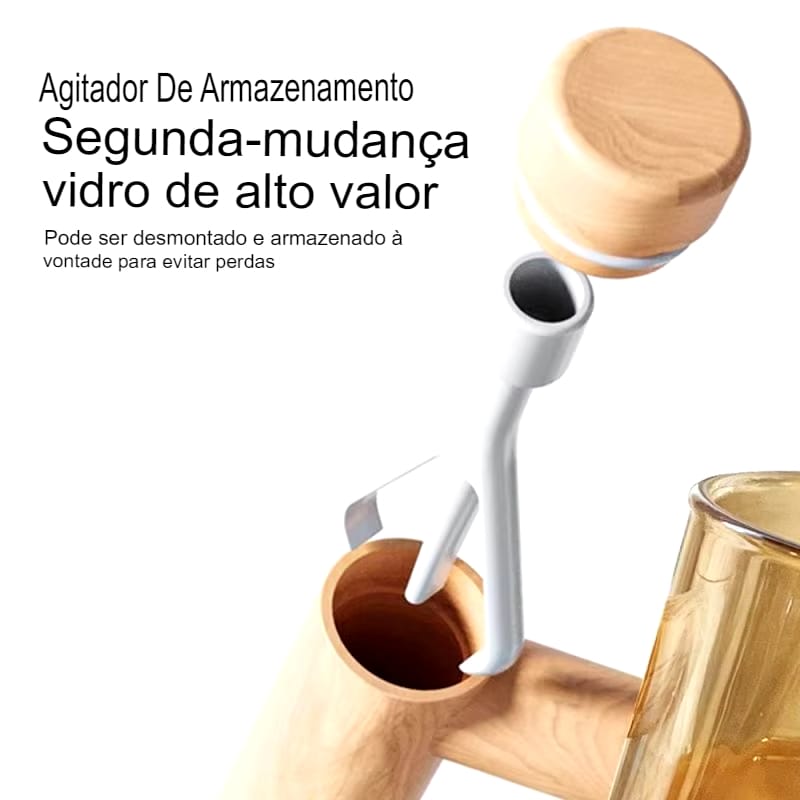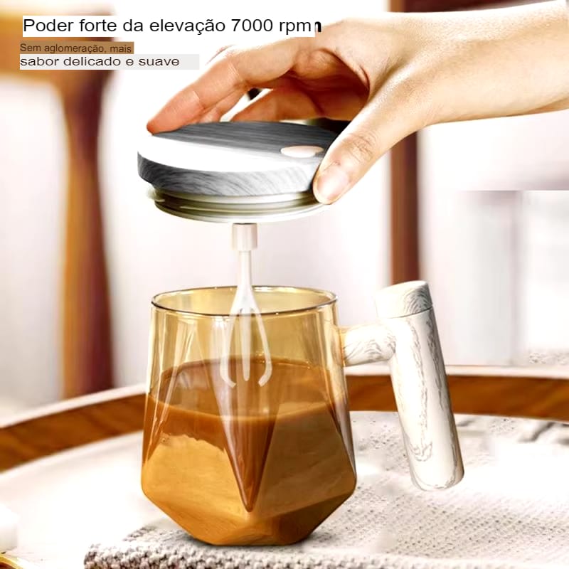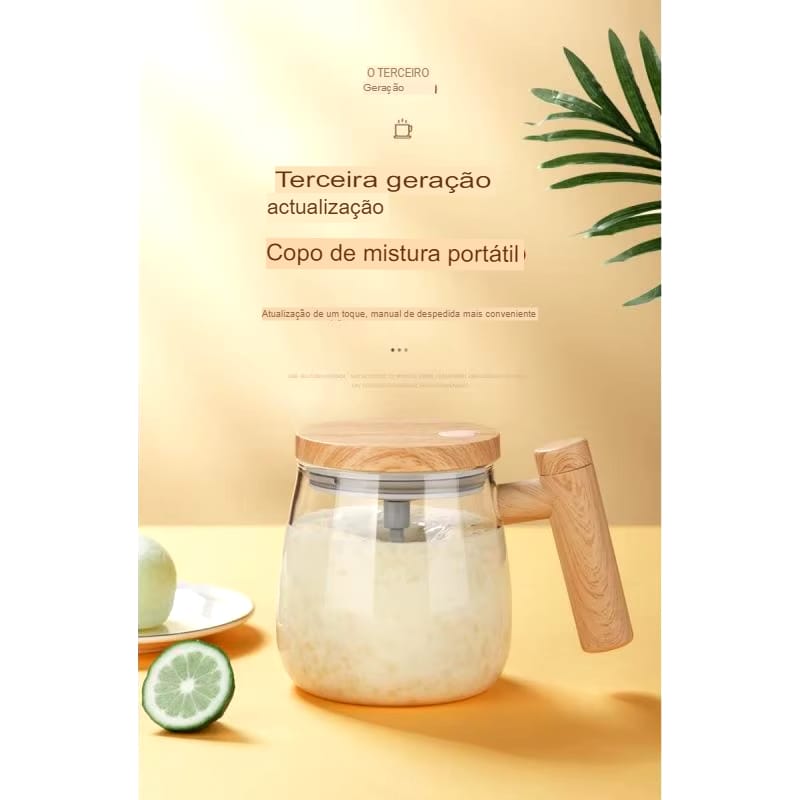Caneca Elétrica de Vidro 400ML com Misturador Automático e Cabo de Madeira