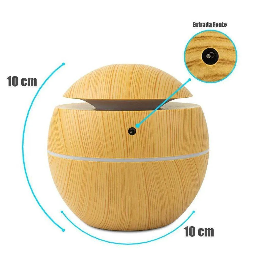 Difusor Ultrassônico Portátil 130ml c/ Luz LED e Purificador Aroma USB