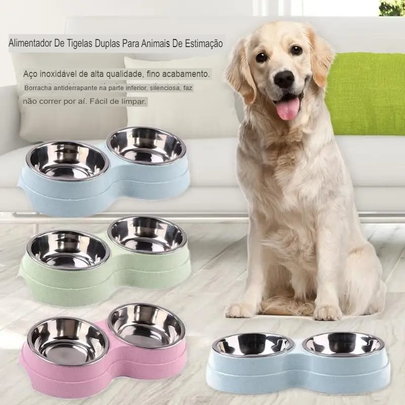 Essa tigela dupla é perfeita para quem tem cachorros, gatos ou filhotes de pequeno porte. Com um design funcional, você pode colocar água e ração ao mesmo tempo, facilitando o dia a dia e deixando tudo mais organizado.
