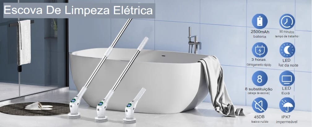 A Escova de Limpeza Elétrica 8 em 1 é a ferramenta indispensável para quem busca praticidade e eficiência na limpeza diária. Com 8 cabeças de escova substituíveis, você pode usá-la em diferentes superfícies, desde o chão e paredes até janelas, pratos e até mesmo no polimento do seu carro.