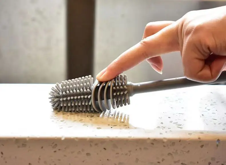 Escova de Limpeza para Garrafas e Copos de Silicone com Cabo Longo