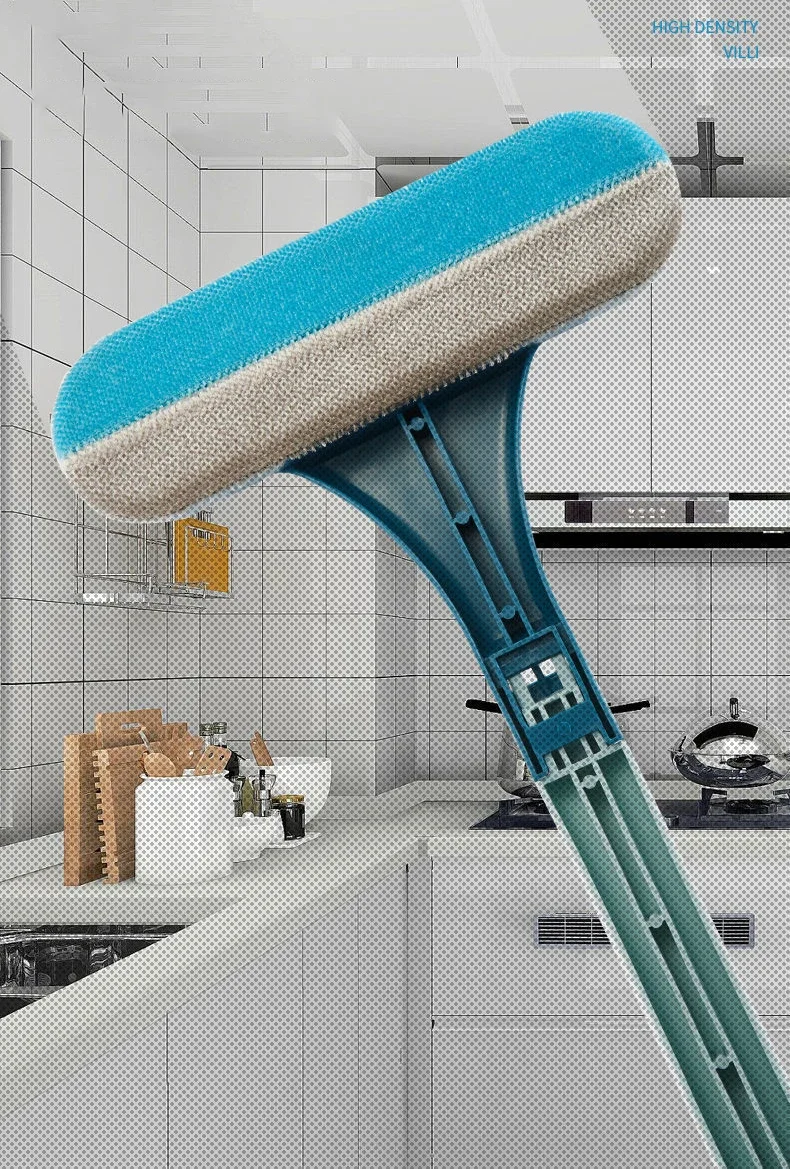 Escova de Limpeza para Telas e Vidros com Rodo e Cabo Longo