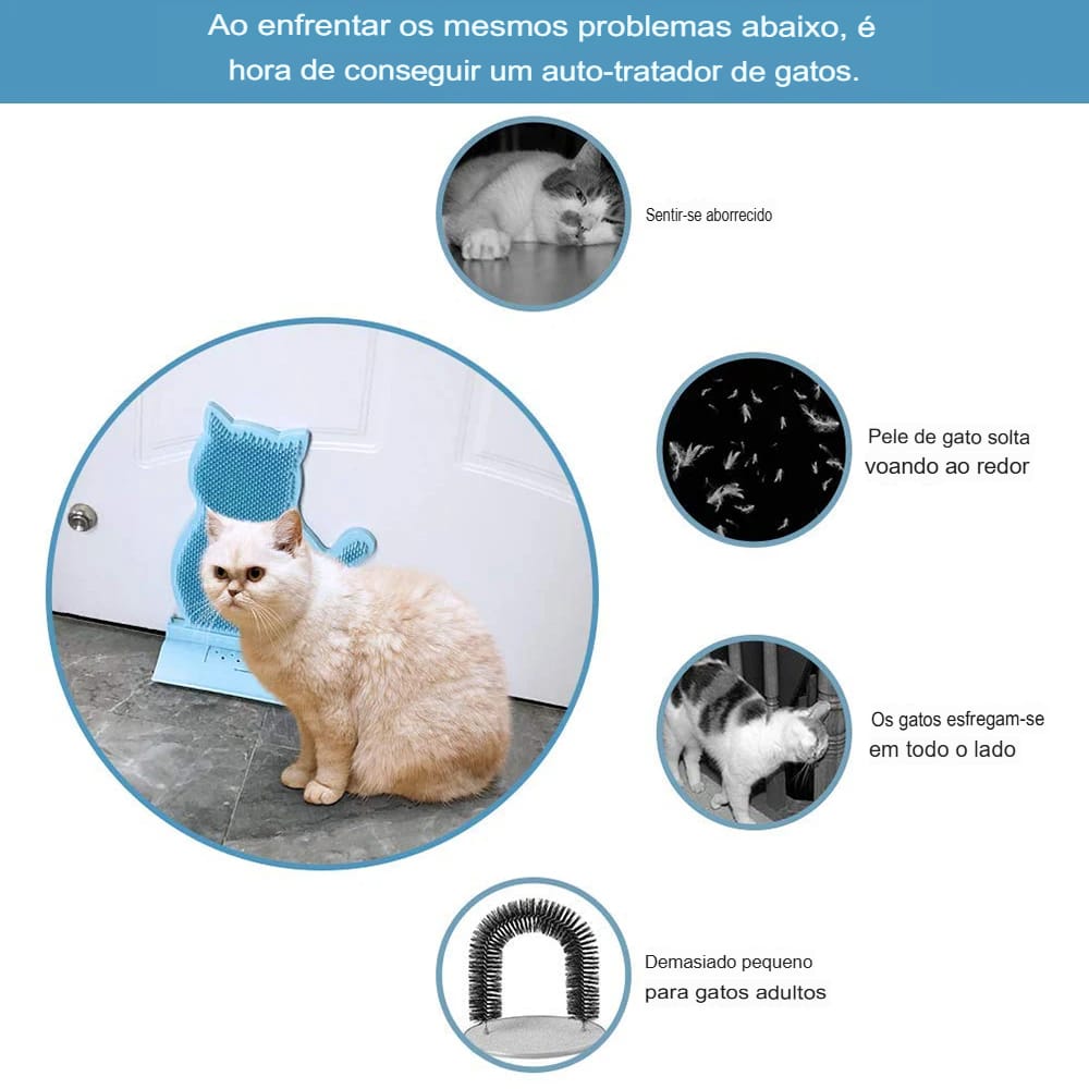 Com a Escova Massageadora e Raspador para Gatos, proporcione momentos de prazer ao seu felino enquanto reduz a queda de pelos.
