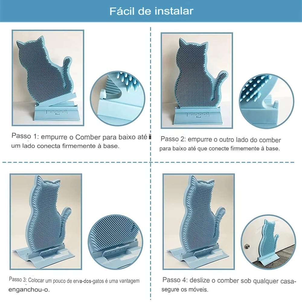 Escova Massageadora e Raspador para Gatos com Suporte de Parede