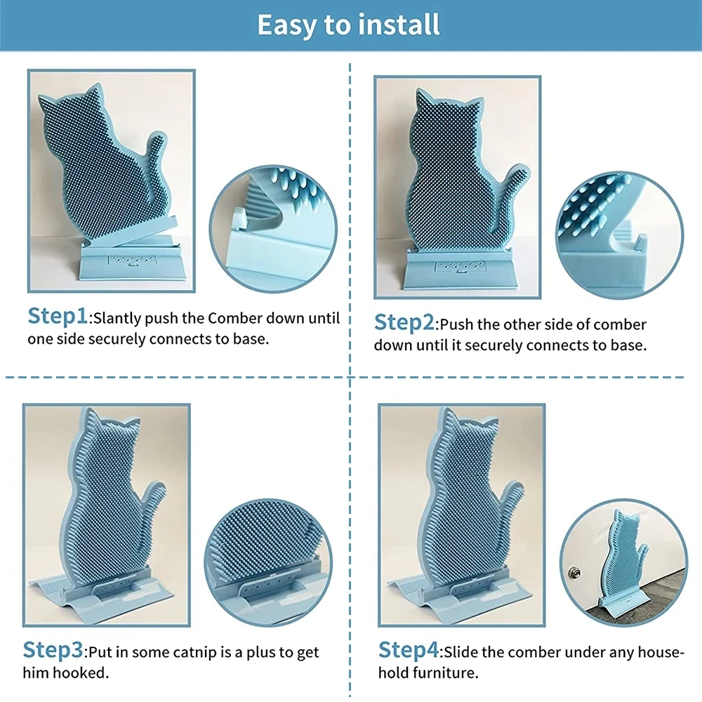A escova ajuda a reduzir a queda de pelos, mantendo-os no topo do massageador. Assim, evita-se que os pelos fiquem nas roupas, sofás ou que sejam inalados, beneficiando tanto o animal quanto o ambiente da casa. Seu gato vai adorar se automassagear, reduzindo também a frequência com que esfrega as patas em suas pernas ou nas paredes.
