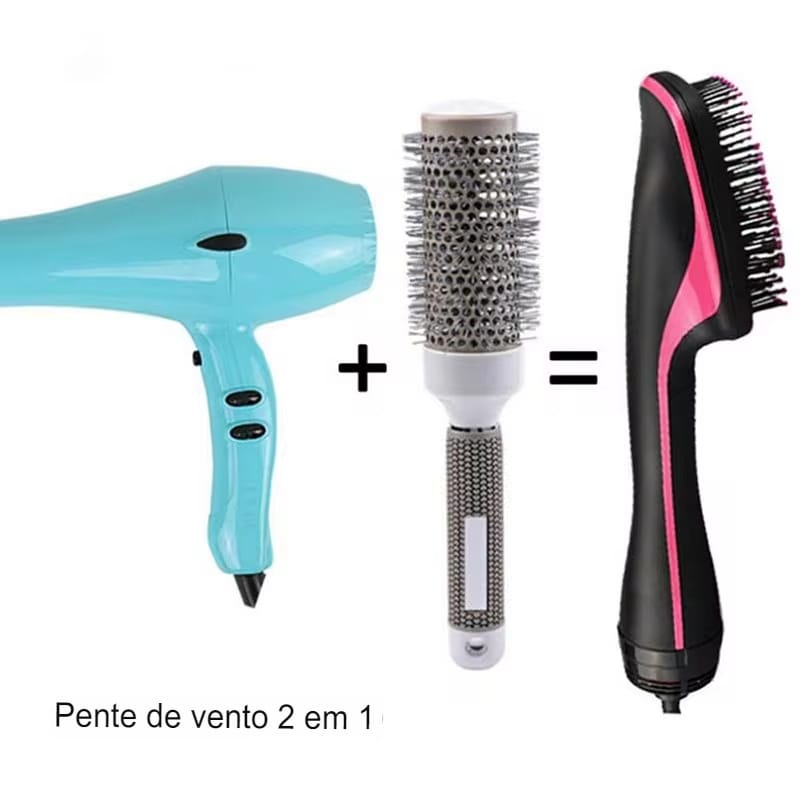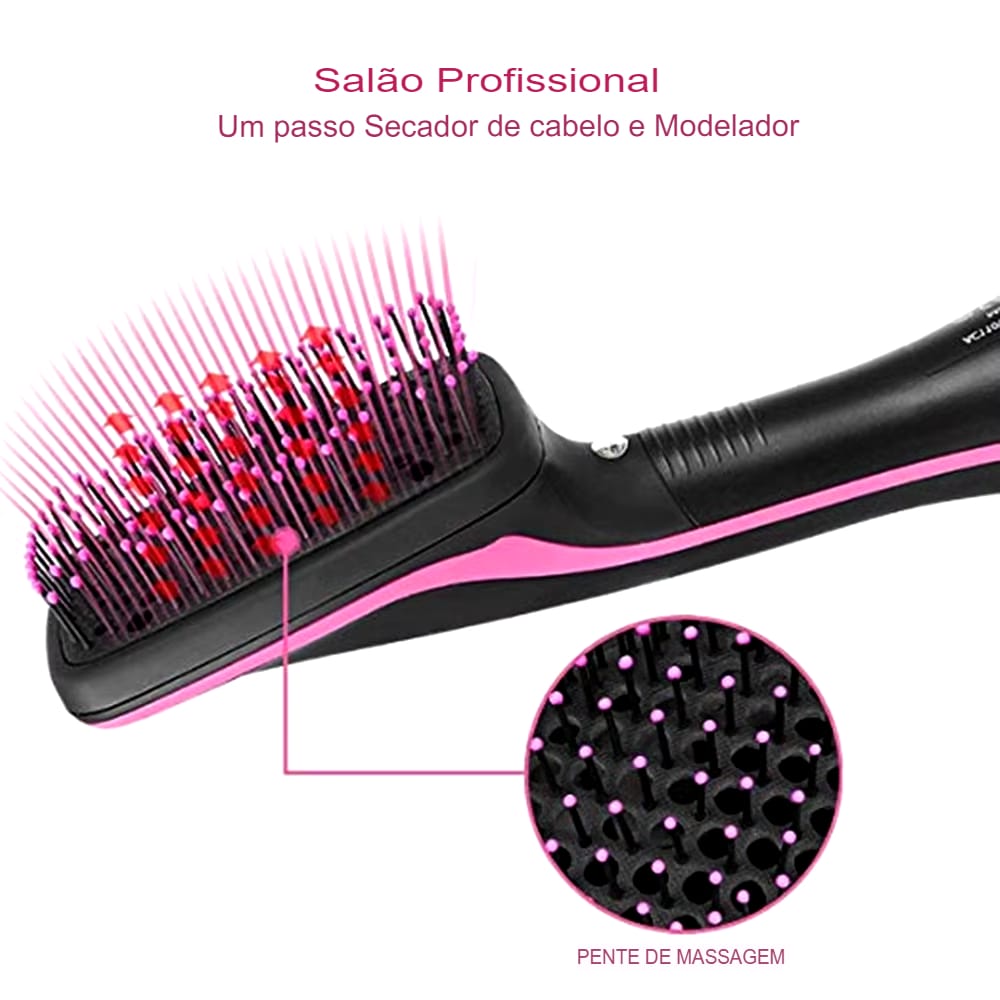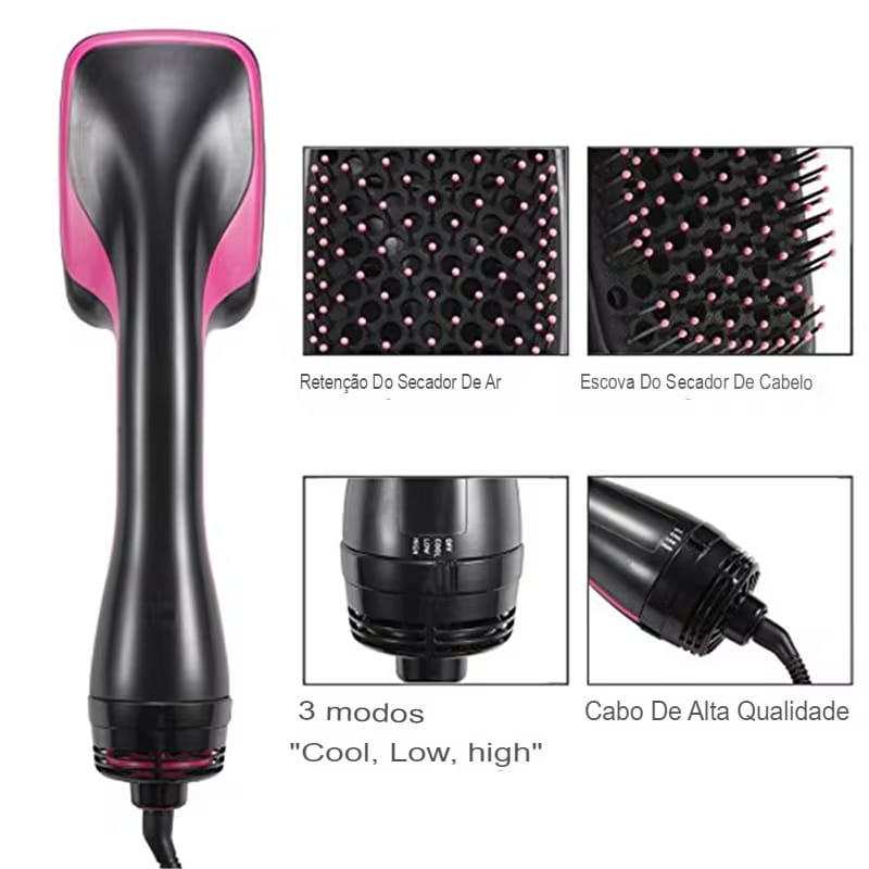 Escova Modeladora de Cabelo 3 em 1: Secador, Chapinha e Cacheador